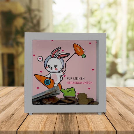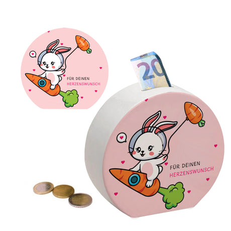 Ab €6,95Grundpreis /Nicht verfügbarAuf LagerNiedliche Spardose mit Häschen Motiv - Für meinen Herzenswunsch