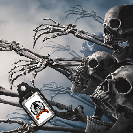 Ab €6,95Grundpreis /Nicht verfügbarAuf LagerTotenkopf Schlüsselanhänger Finger weg mit grauem Hintergrund