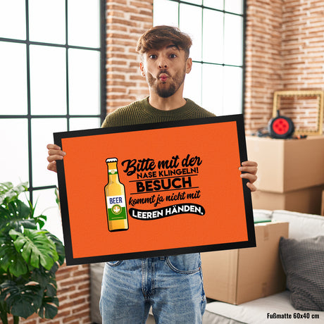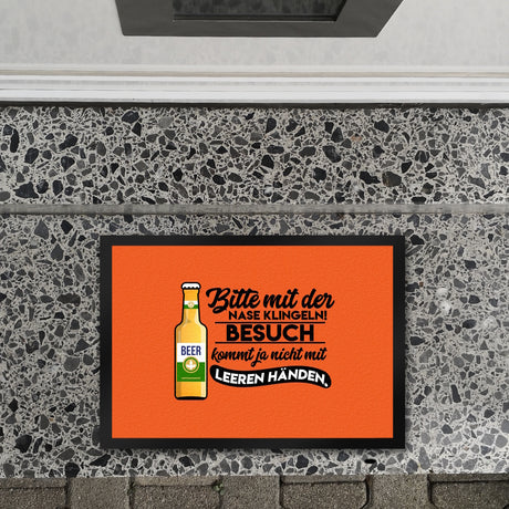 Ab €8,95Grundpreis /Nicht verfügbarAuf LagerBitte mit der Nase klingeln Fußmatte in 35x50 cm in orange mit Spruch und Biermotiv