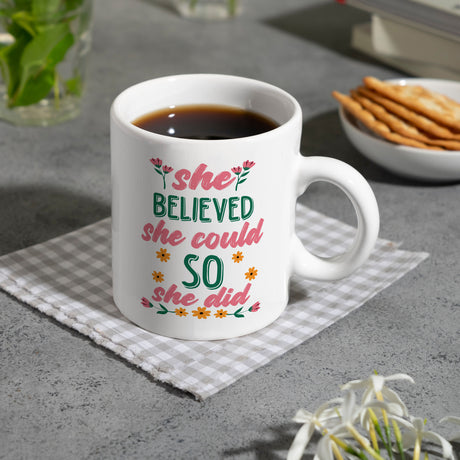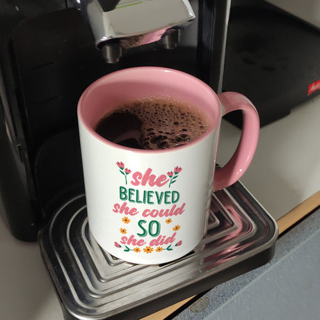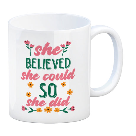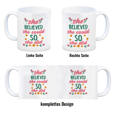Ab €12,95Grundpreis /Nicht verfügbarAuf LagerMotivation Kaffeebecher mit Spruch She believed she could so she did
