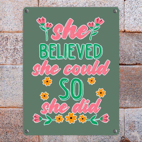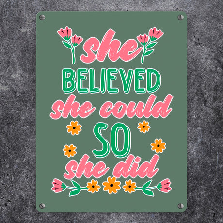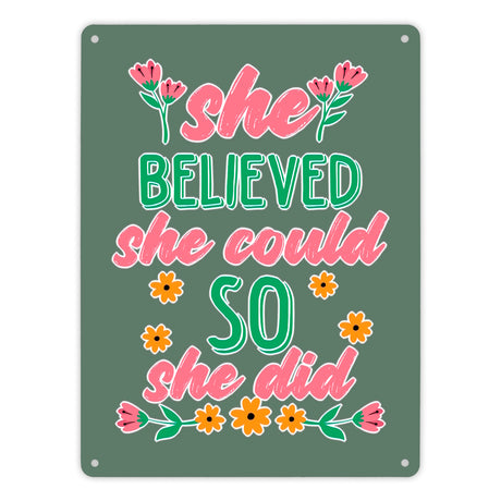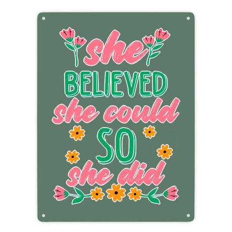 Ab €12,95Grundpreis /Nicht verfügbarAuf LagerMotivation Metallschild in 15x20 cm mit Spruch She believed she could so she did