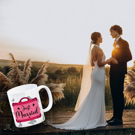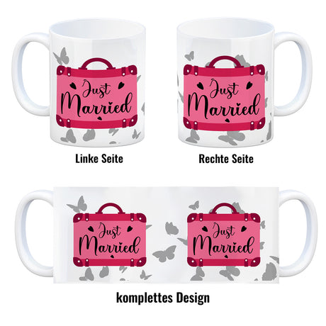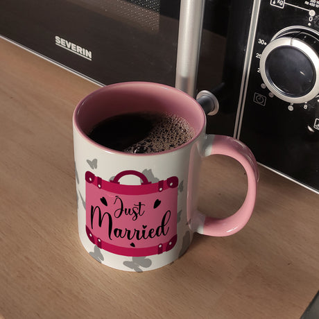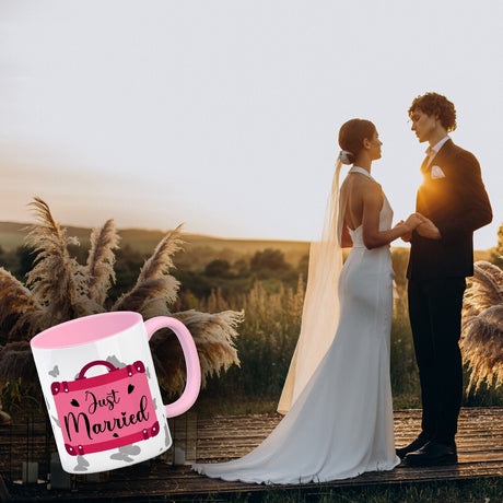 Ab €12,95Grundpreis /Nicht verfügbarAuf LagerJust married Hochzeit Kaffeebecher mit pinkem Koffer