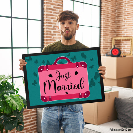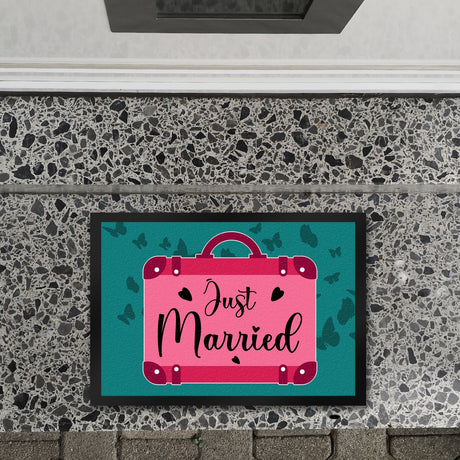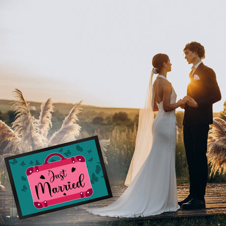 Ab €12,95Grundpreis /Nicht verfügbarAuf LagerJust married Hochzeit Fußmatte in 35x50 cm mit pinkem Koffer