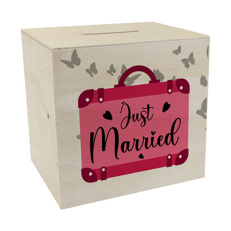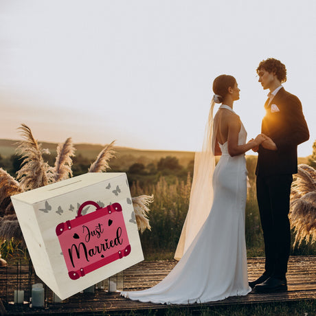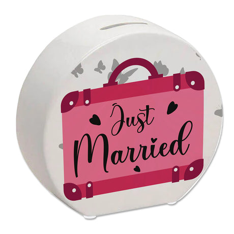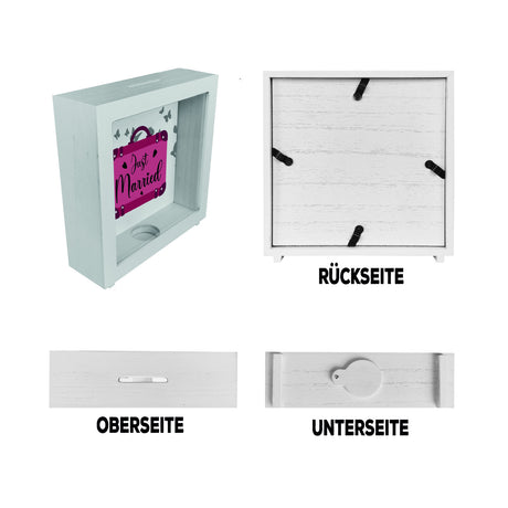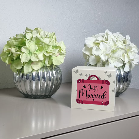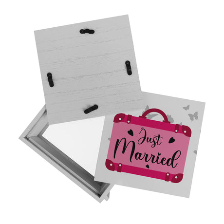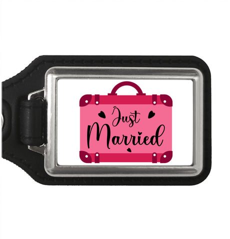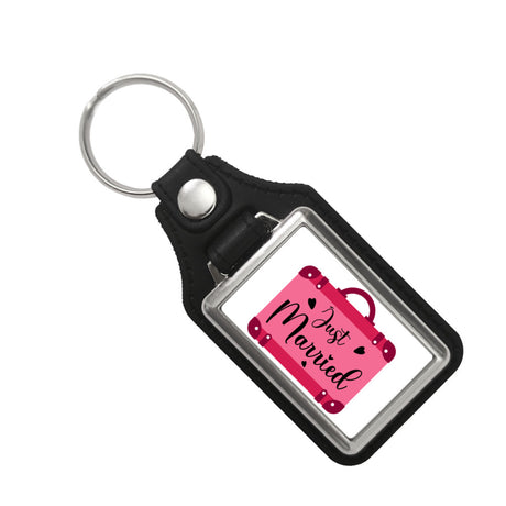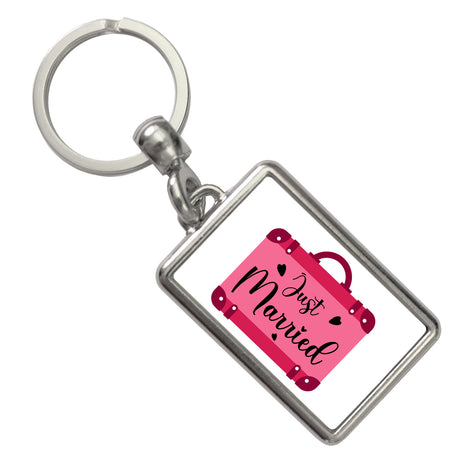 Just married Hochzeit Schlüsselanhänger mit pinken Koffer