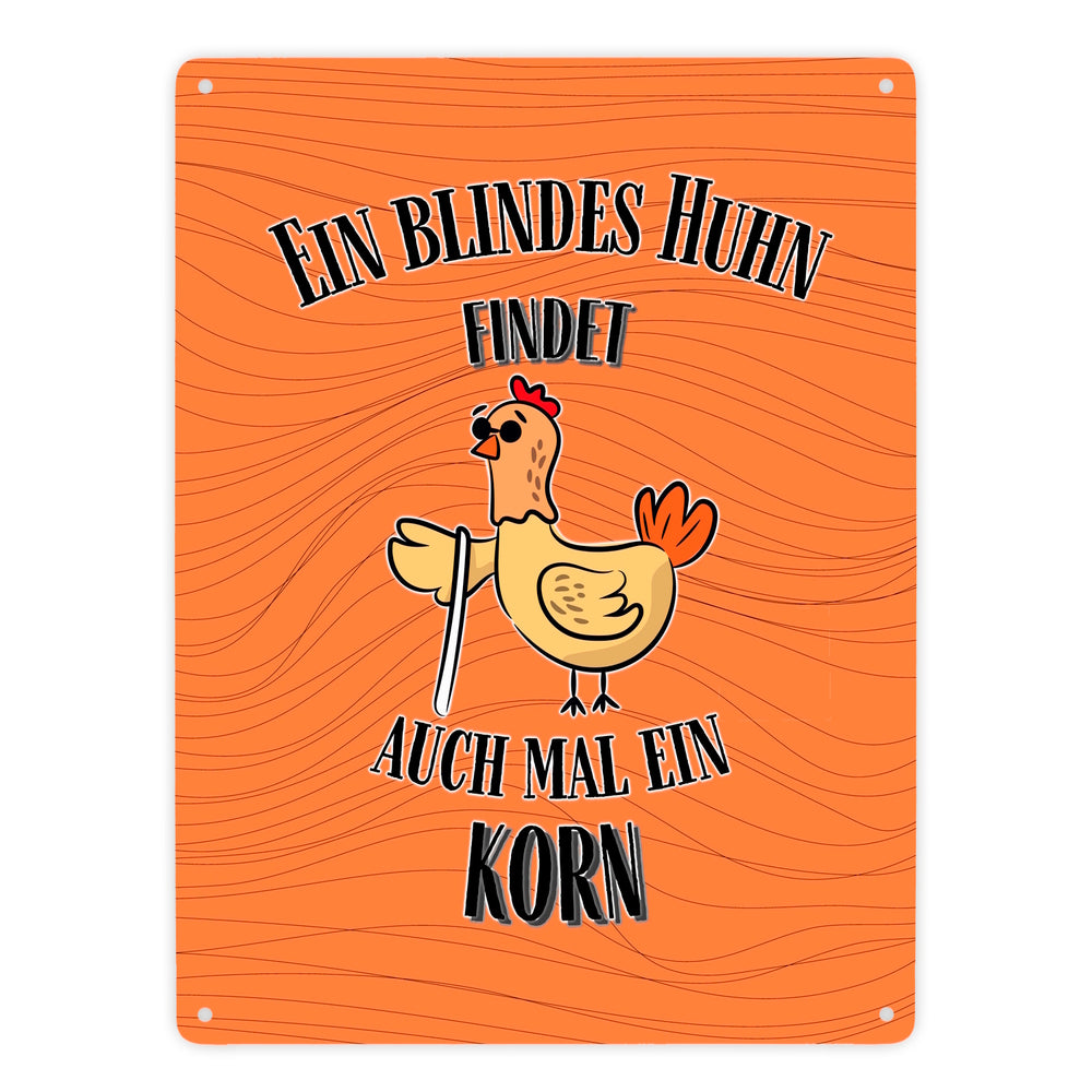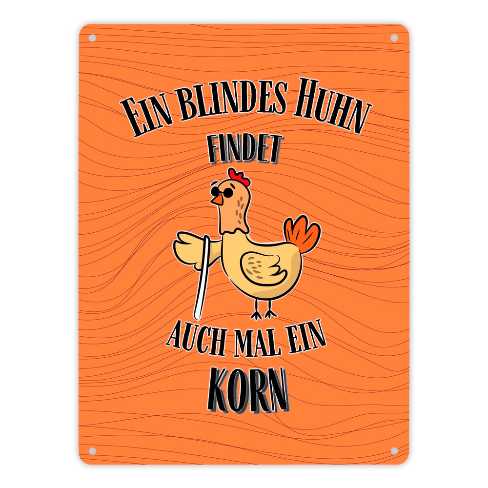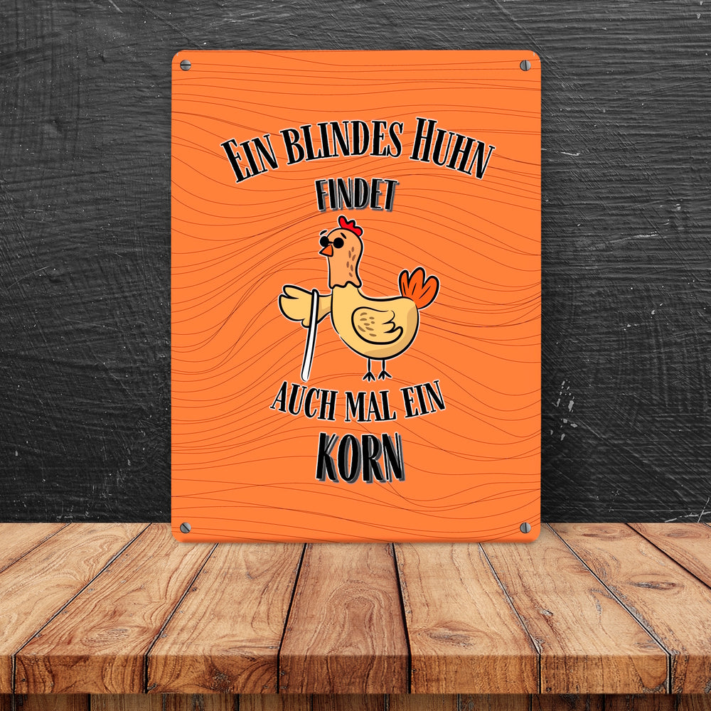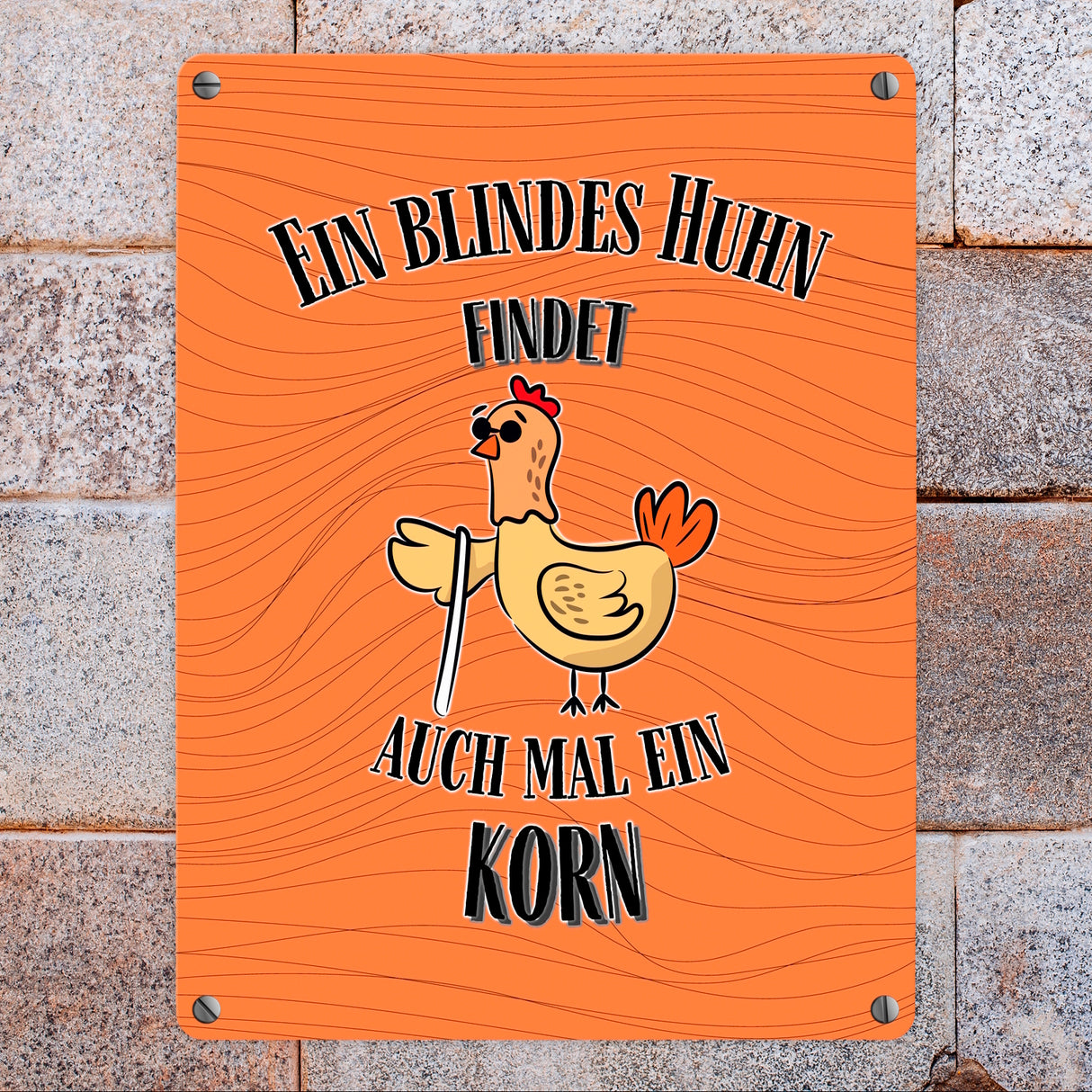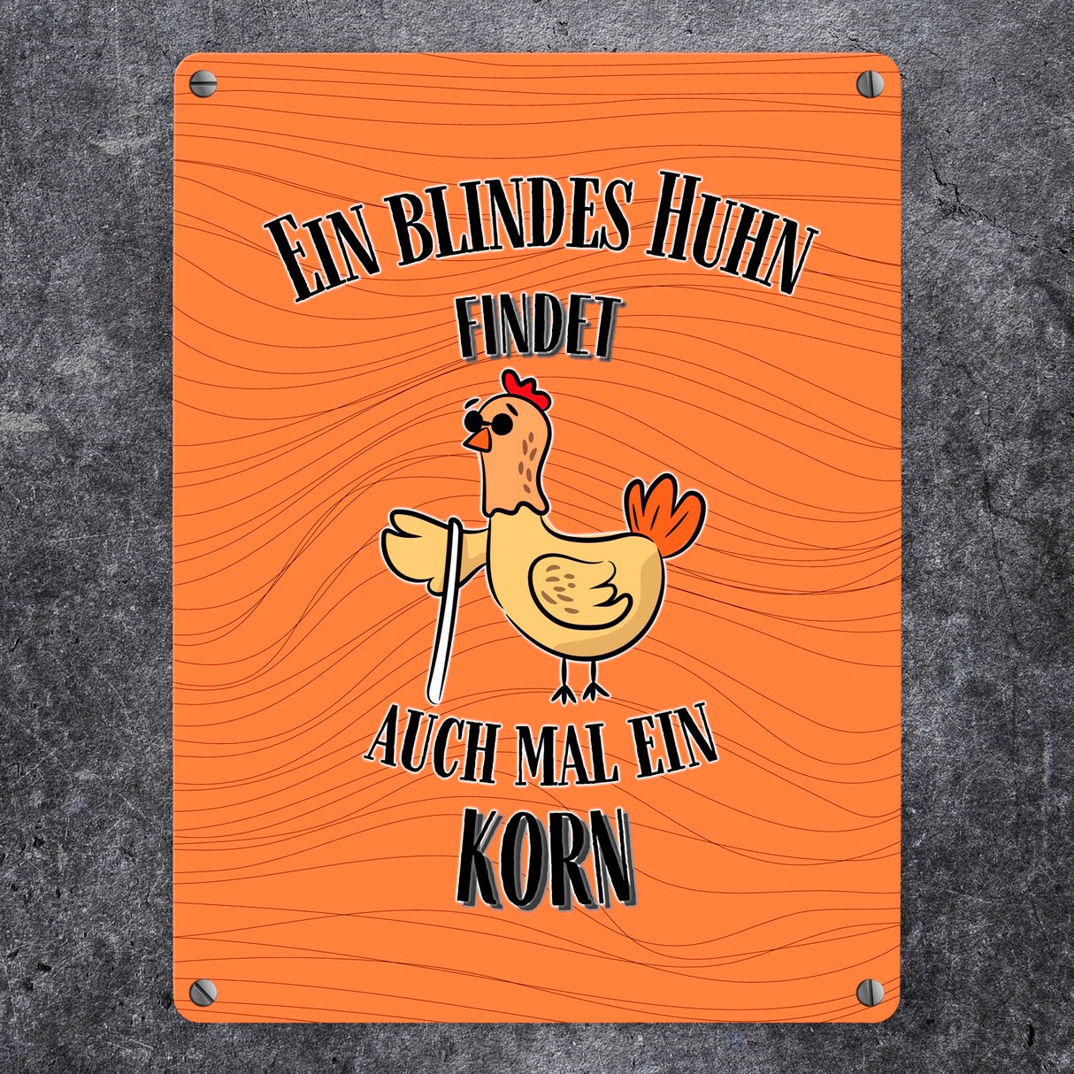 Blindes Huhn Metallschild in 15x20 cm mit Spruch