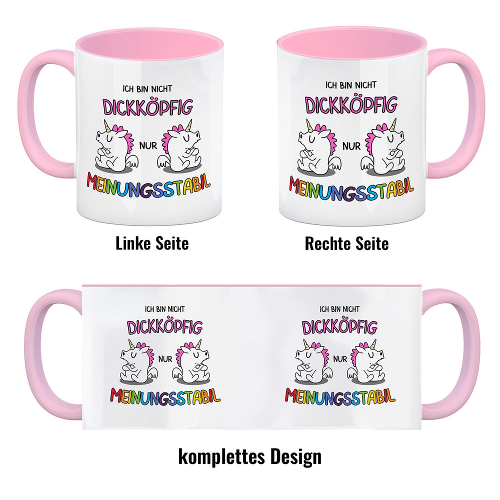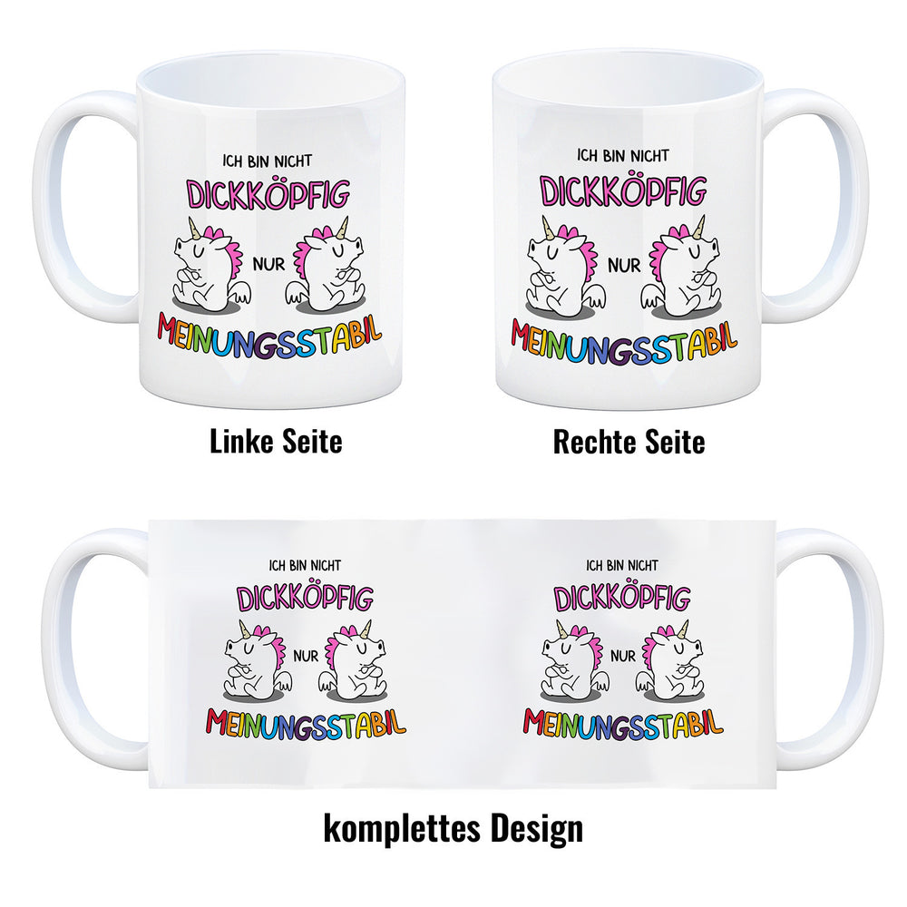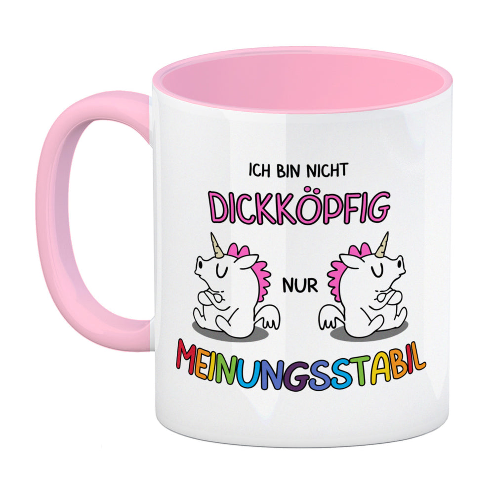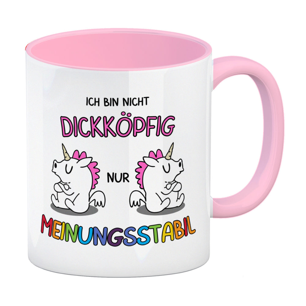 Einhorn Kaffeebecher mit Spruch: Ich bin nicht dickköpfig nur meinungsstabil