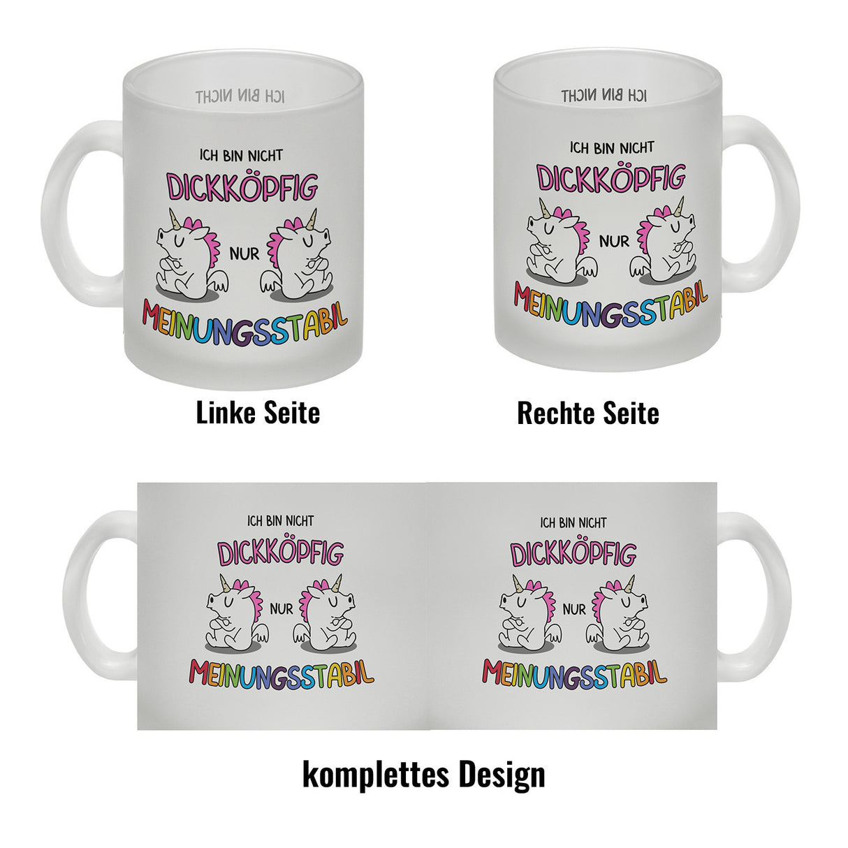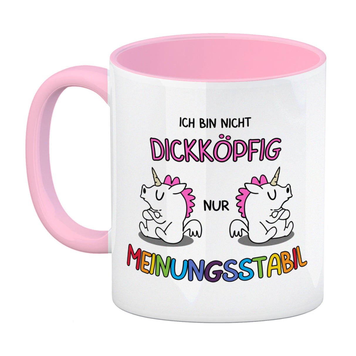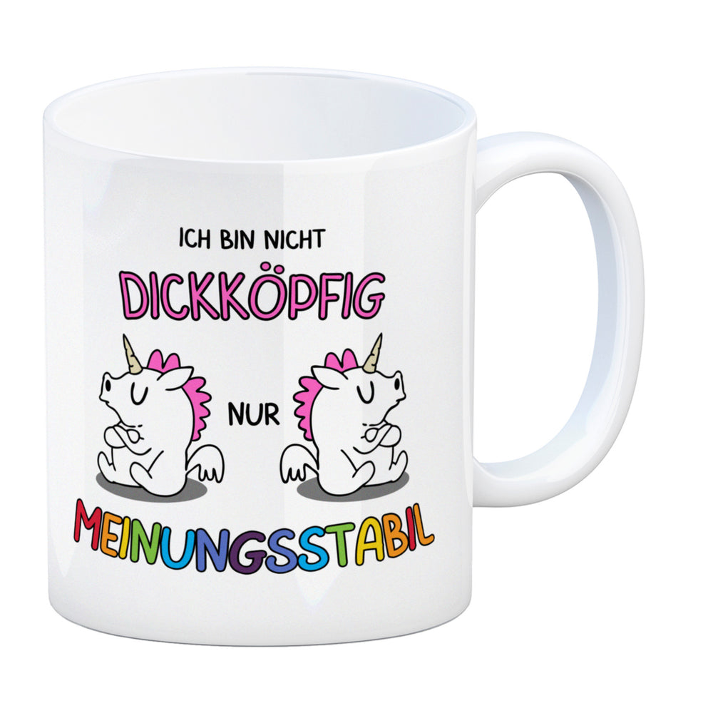 • 1x Einhorn Kaffeebecher mit Spruch: Ich bin nicht dickköpfig nur meinungsstabil in der gewählten Ausführung