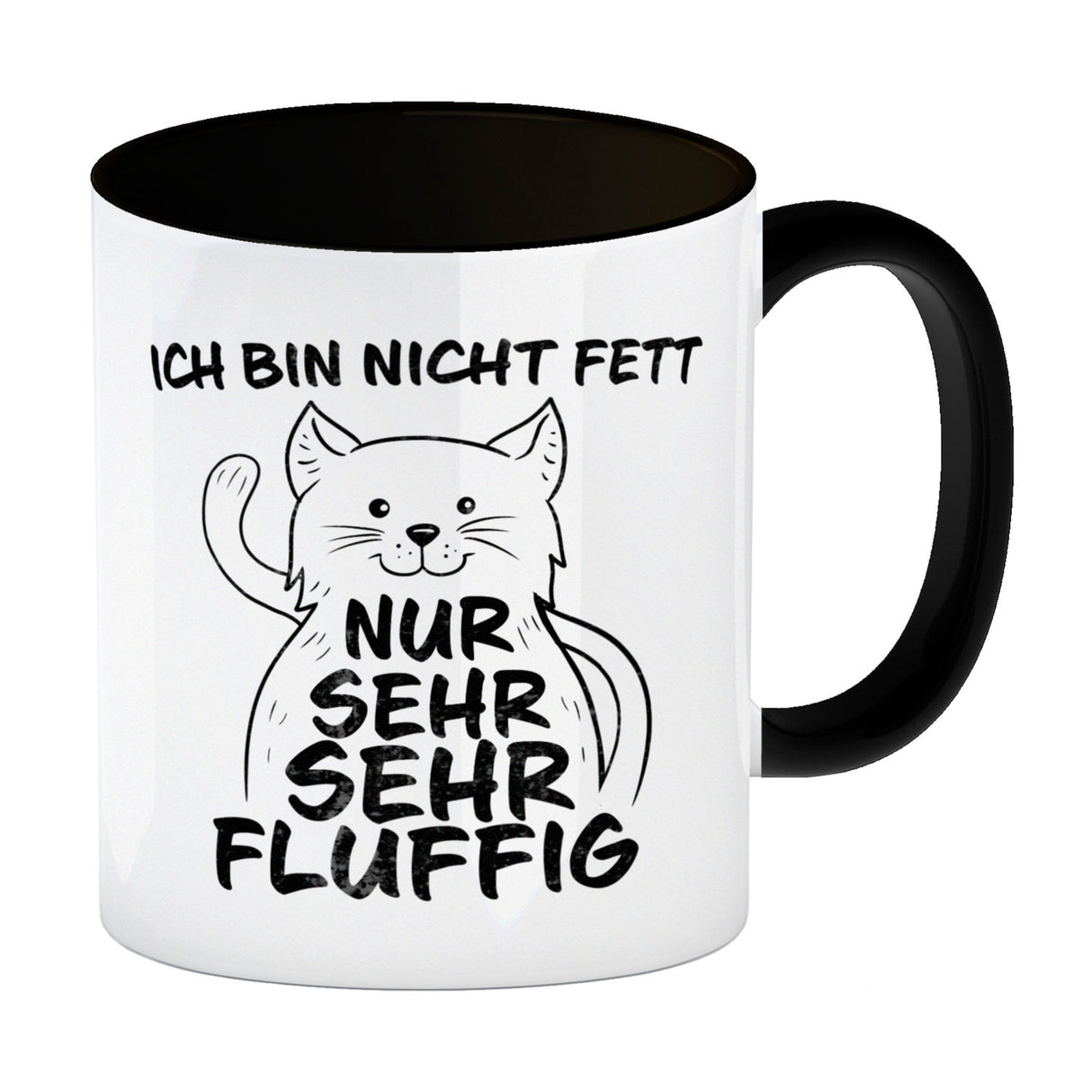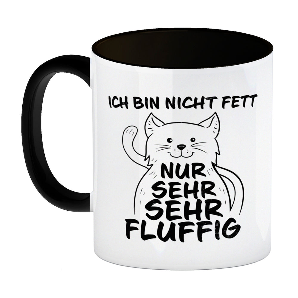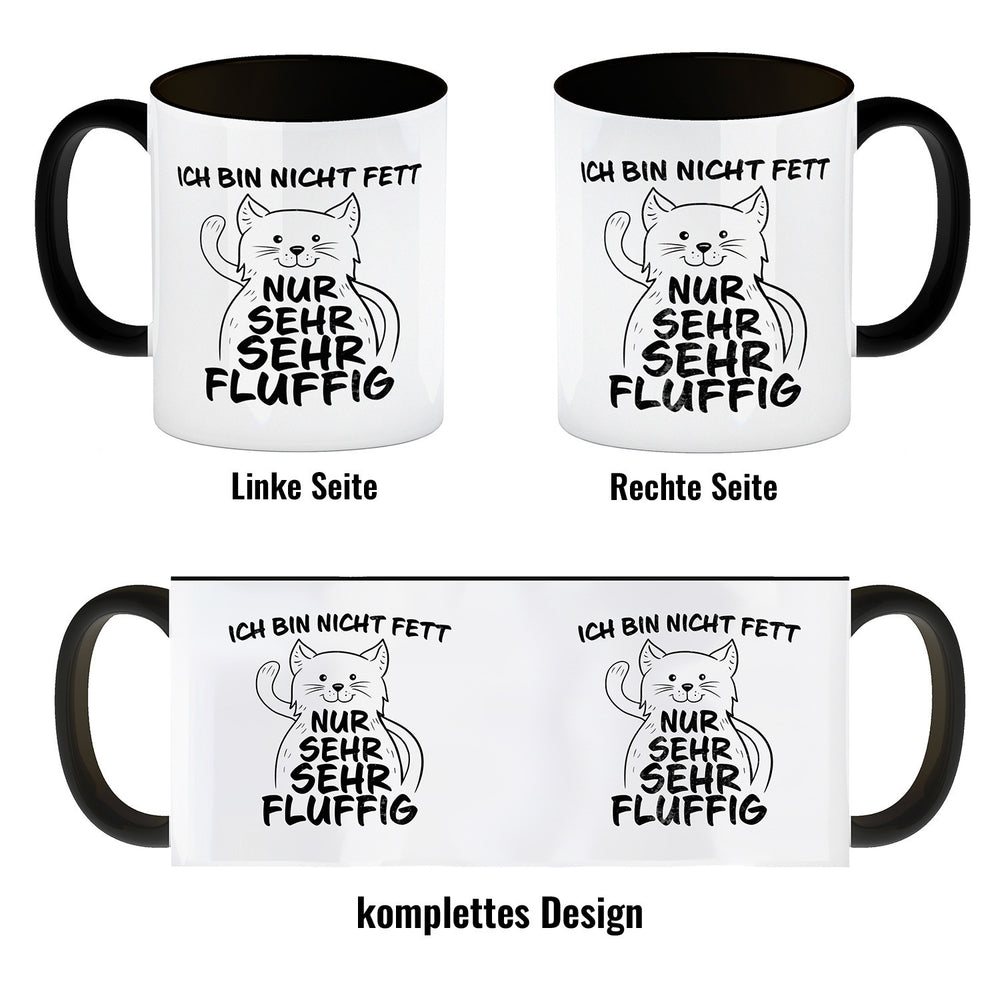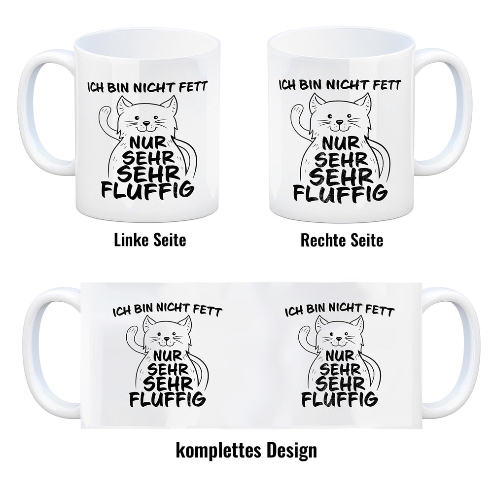 • 1x Ich bin nicht Fett nur sehr fluffig Kaffeebecher mit lustiger Katze in der gewählten Ausführung