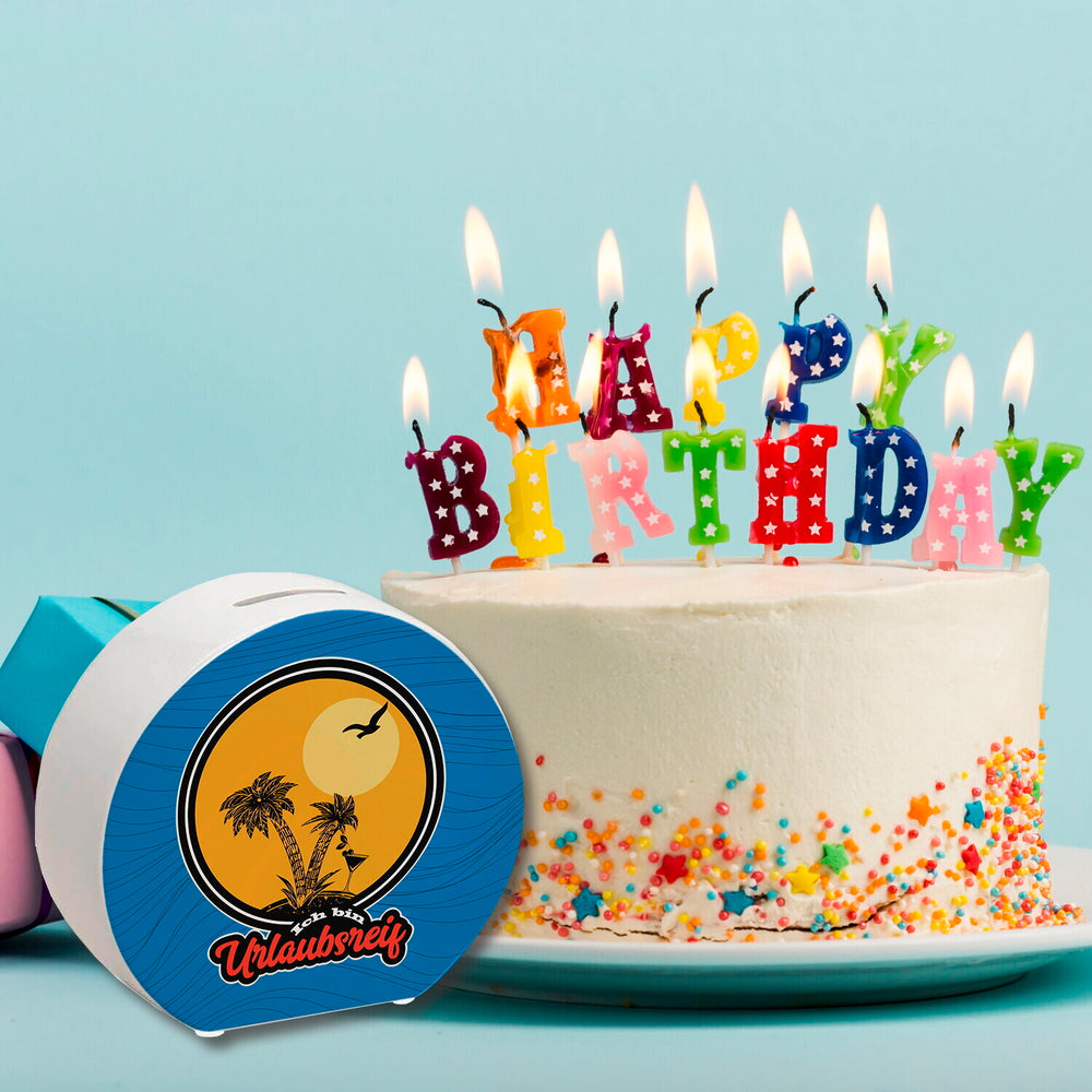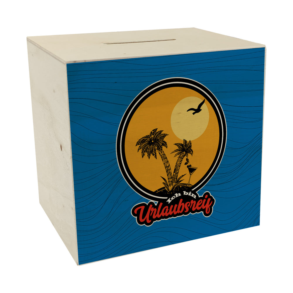 • 1x Ich bin Urlaubsreif Spardose mit Palmen in der gewählten Ausführung