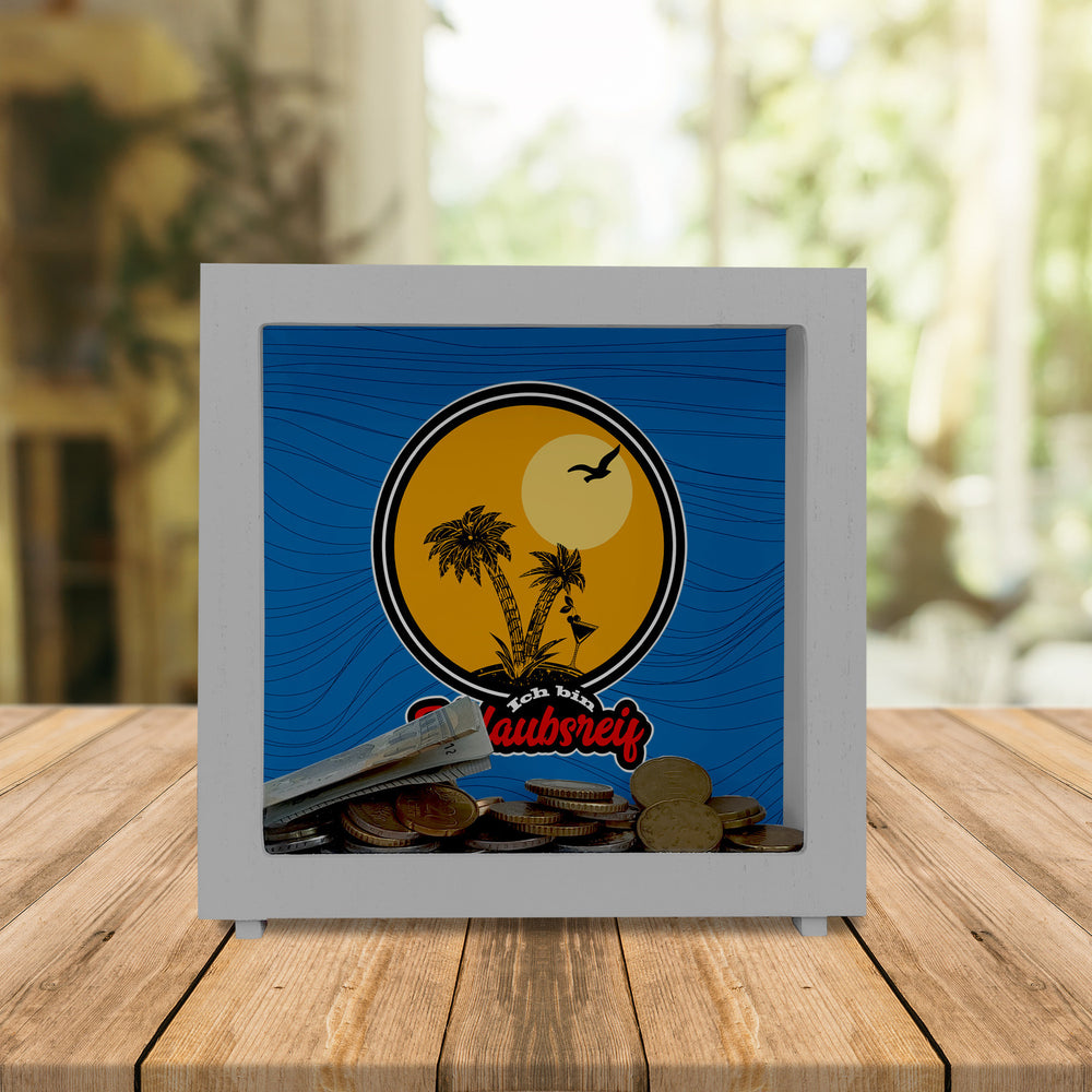 Machen Sie Ihren Freunden eine besondere Freude und unterstützen Sie sie mit dieser Spardose von Ich bin Urlaubsreif. Die dekorative Spardose ist in drei verschiedenen Varianten erhältlich – als schlichte Holzspardose, als ovale Keramik-Version oder als exklusive Rahmen-Variante aus Holz mit Sichtfenster. Mit dem Urlaubsreif-Motiv und dem Palmen-Motiv wird man automatisch auf die nächste Reise motiviert. Dank der handgefertigten Spardose aus Deutschland kann man ganz einfach ansparen und sich seinen Traum vom Sommerurlaub erfüllen. Ein tolles Geschenk für Freunde und Familie!
