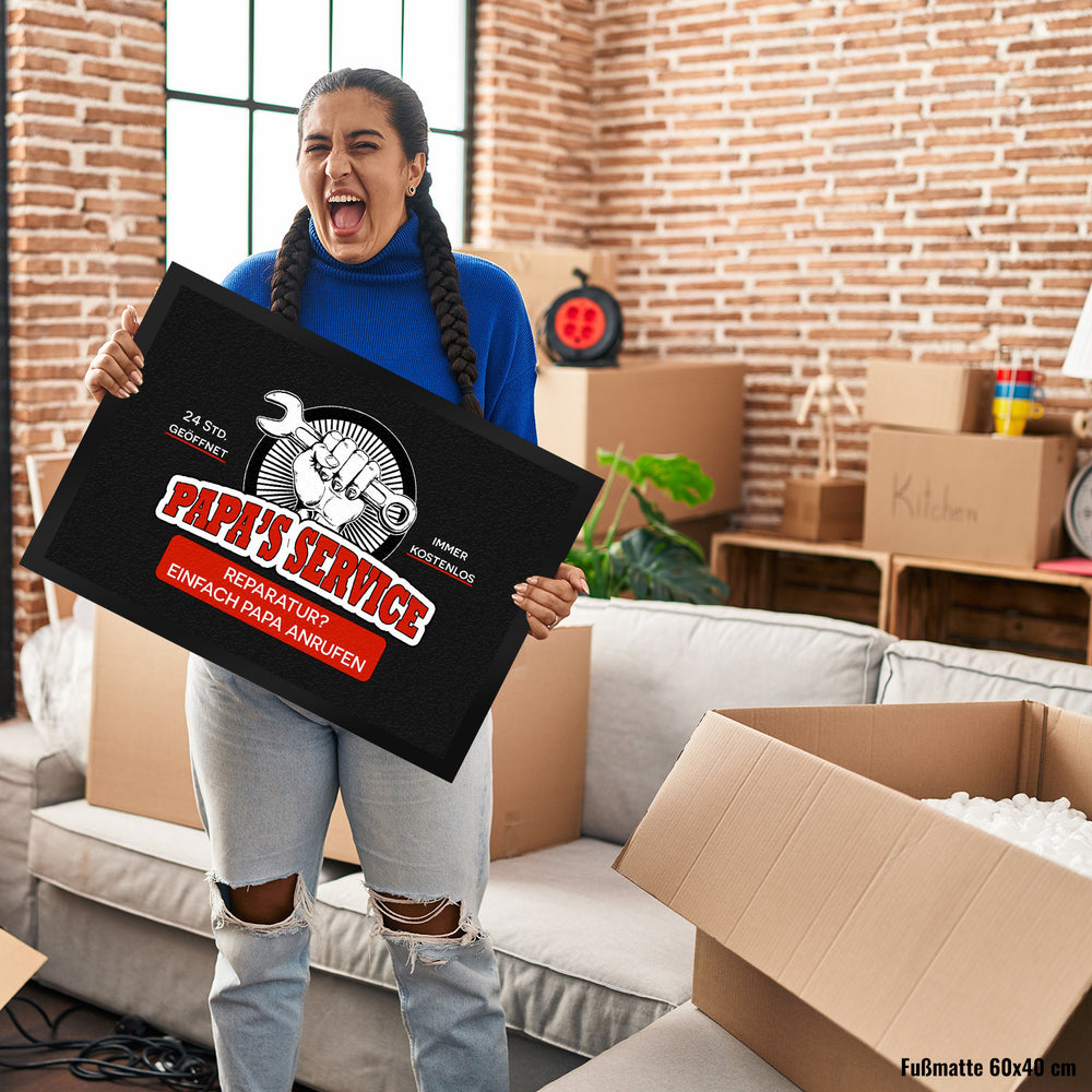 Papa's Service Fußmatte mit Werkstattmotiv