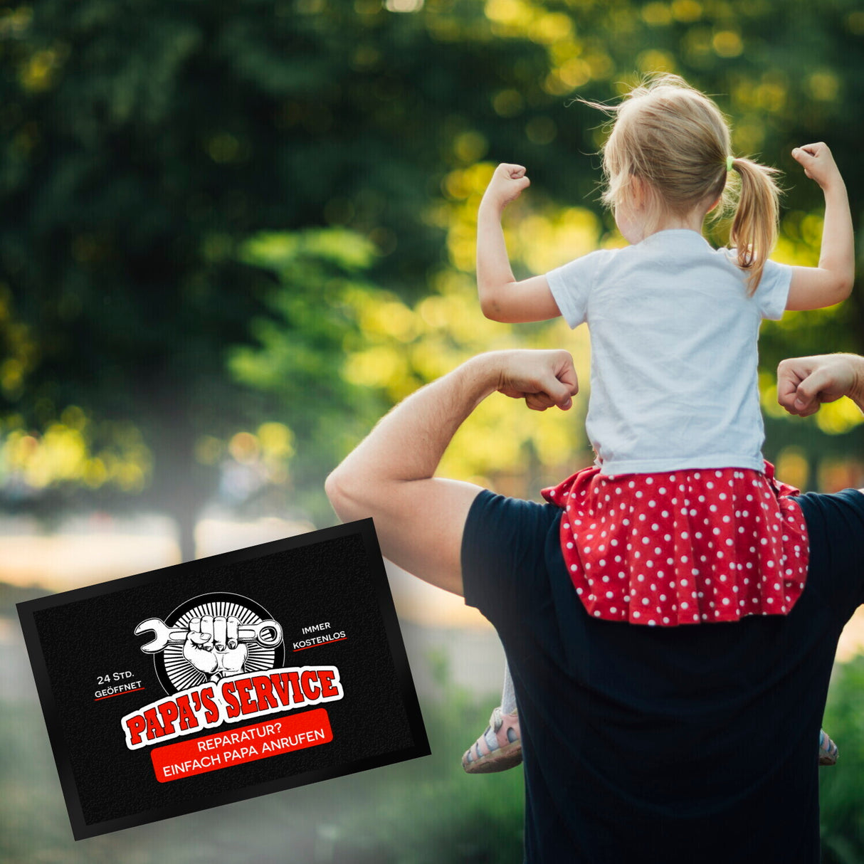 - 1x Papa's Service Fußmatte mit Werkstattmotiv in der gewählten Größe