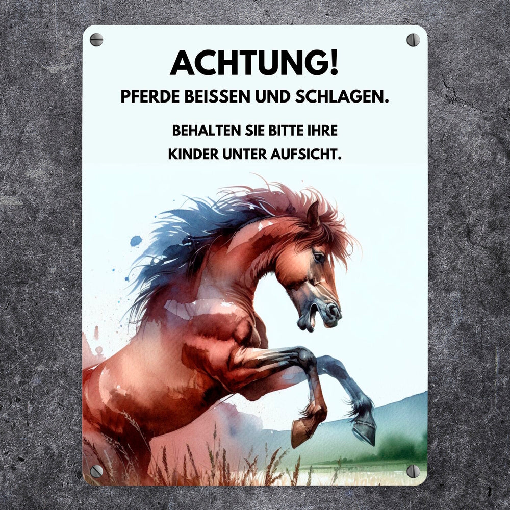 Pferd Metallschild in 15x20 cm mit Spruch Vorsicht Pferde beißen schlagen Kinder überwachen