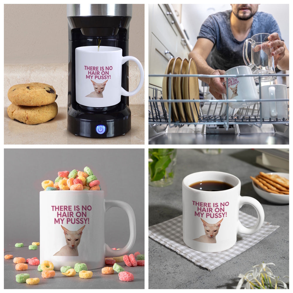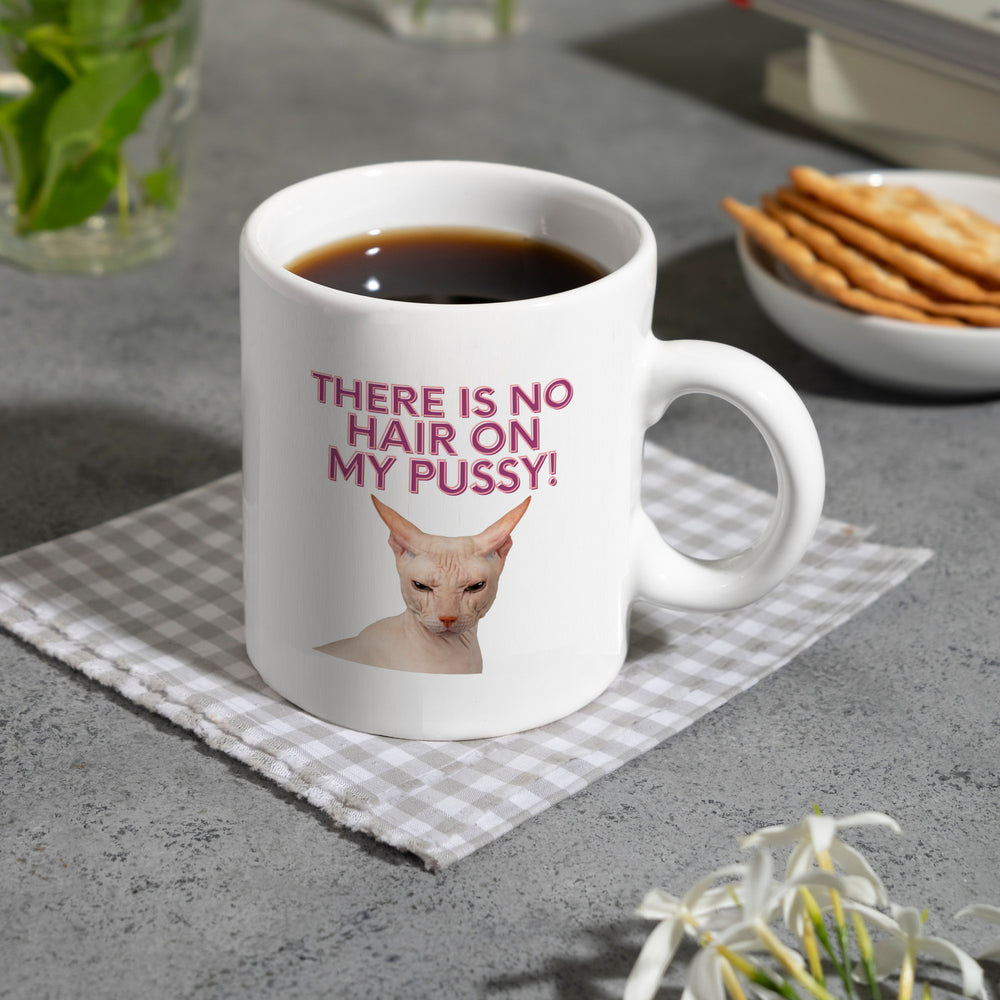 - 1x There is no Hair on my Pussy Katze Kaffeebecher in der gewählten Ausführung