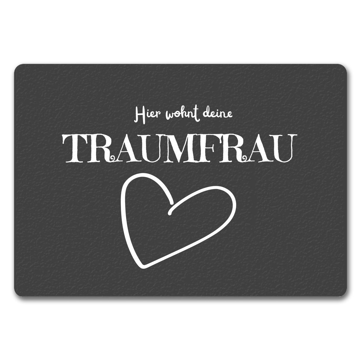 - Mit der liebevollen Fußmatte mit Traumfrau Motiv können Sie Ihrem Partner zum Umzug ein besonderes Geschenk machen. Dieses Accessoire ist eine schöne Geschenkidee, um jeden Raum in den vier Wänden Eurer Behausung entsprechend herzlich und schick aussehen zu lassen. Der Spruch „Hier wohnt deine Traumfrau“ unterstreicht noch den romantischen Charakter dieser Türmatte als Fußabtreter im Flur oder an der Haustür.