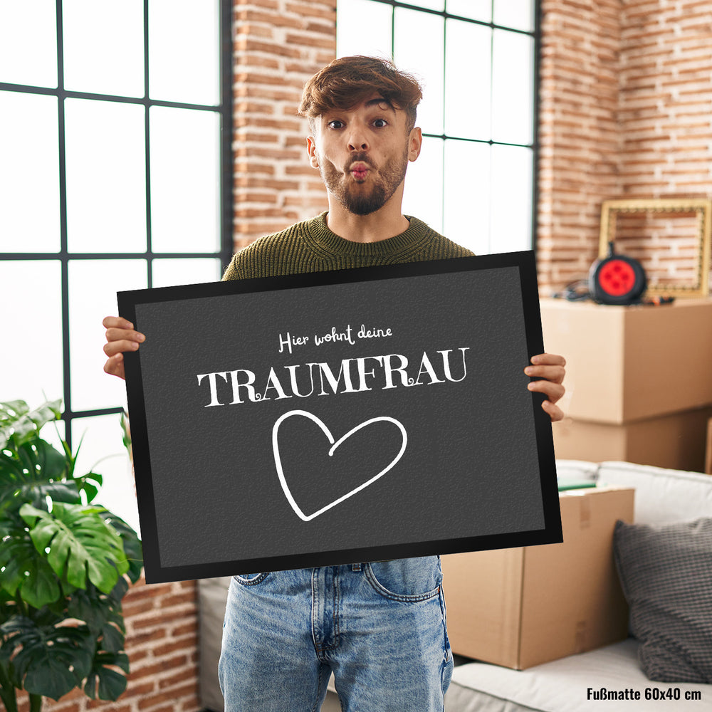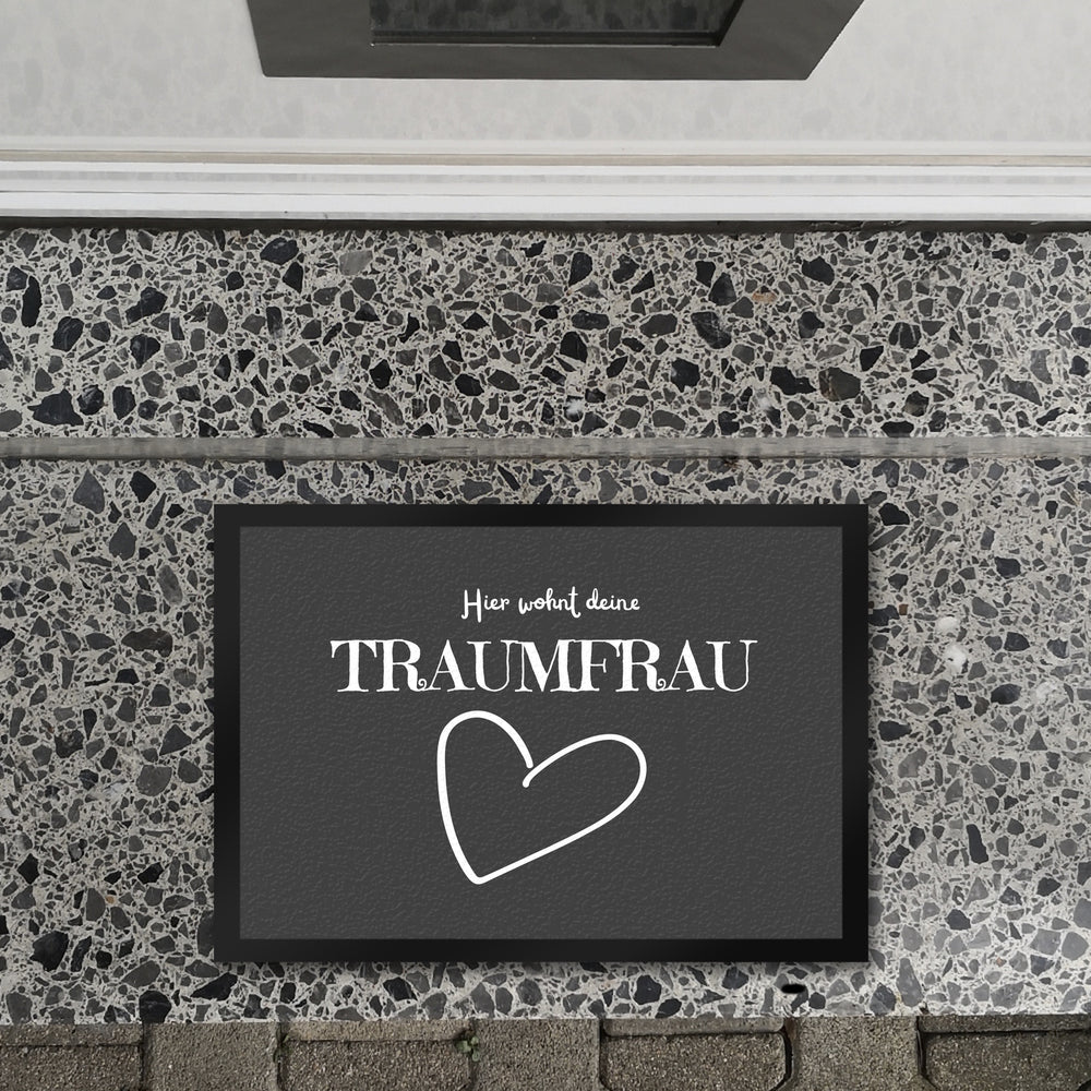 Traumfrau Fußmatte in 35x50 cm mit Spruch Hier wohnt deine Traumfrau