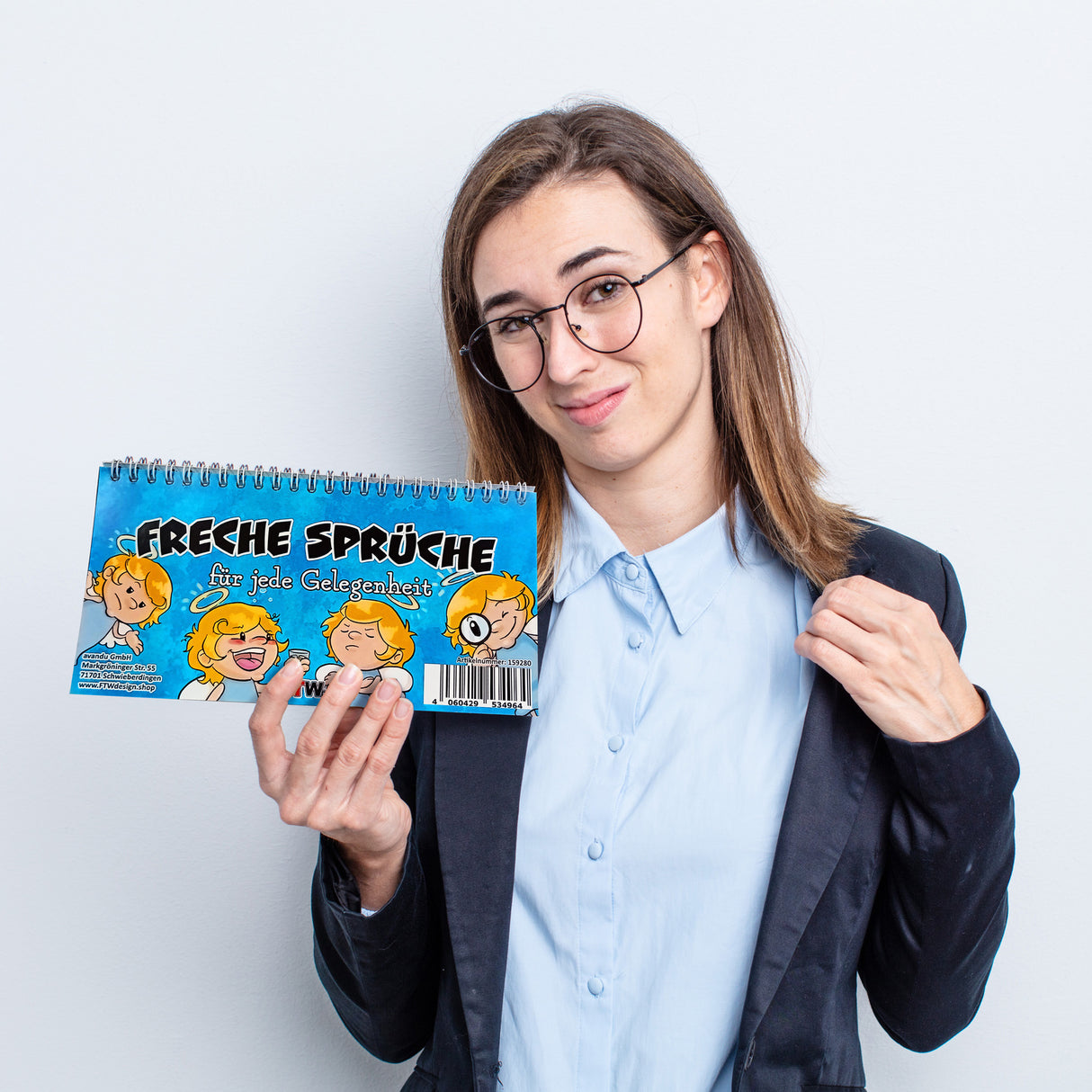 - Der Tischaufsteller verfügt über zwölf freche, ironische sowie sarkastische Sprüche.