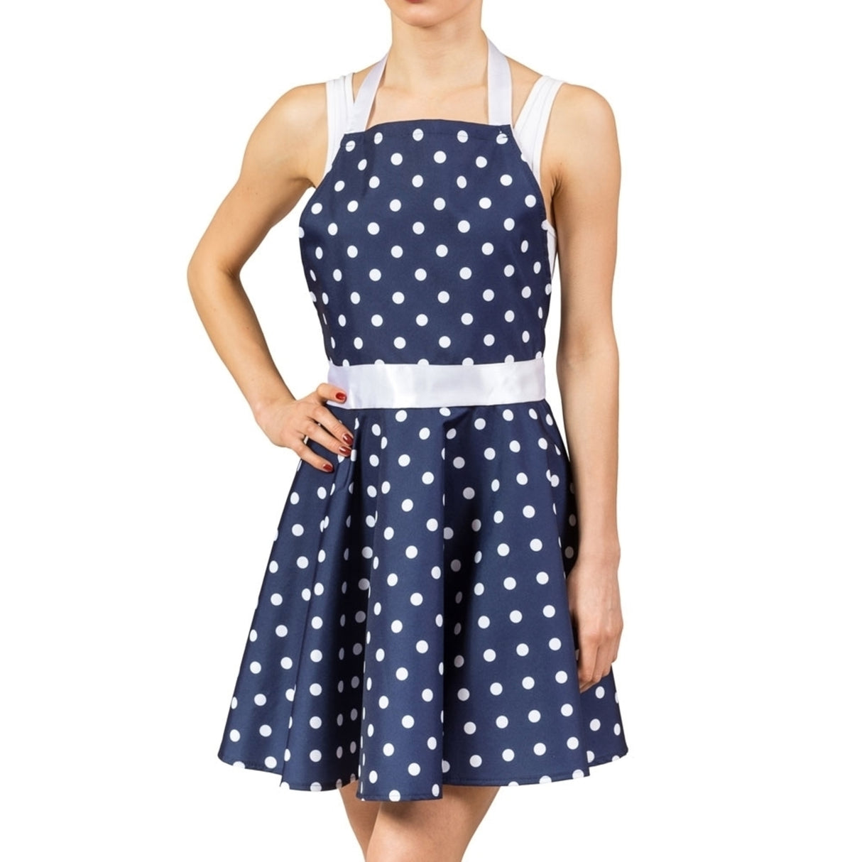 Der absolute Hingucker in jeder Küche! Diese Rockabilly Kleid Kochschürze ist nicht nur ein praktisches Geschenk zum 18. Geburtstag, sondern verleiht auch dem Ambiente Ihrer Küche eine ganz besondere Note. Das wasserfeste und widerstandsfähige Material schützt Sie vor Flecken und Spritzern während des Kochens oder Backens. Mit ihrem 1950er-Style-Kleid Look mit weißen Punkten auf dunkelblauem Hintergrund ist die Kochschürze ein absoluter Eyecatcher und wird garantiert alle Blicke auf sich ziehen. So verwandeln Sie Ihre Küche in eine Wohlfühloase und machen das Kochen zu einem Vergnügen.