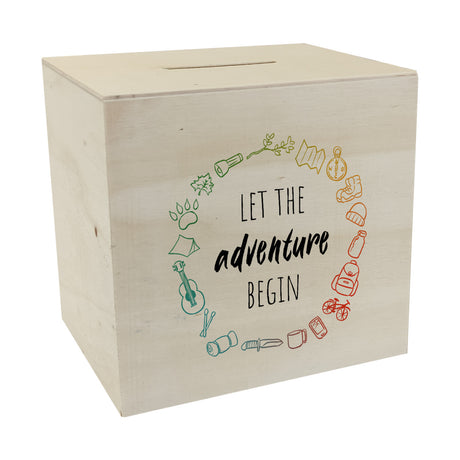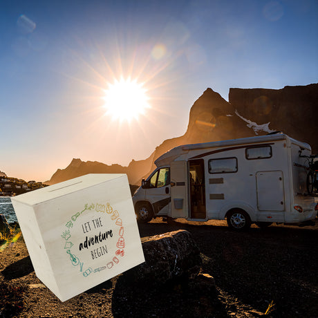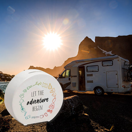 Spardose mit Campingmotiven in bunten Farben - Let the adventure begin