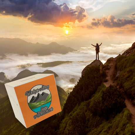 Ab €6,95Grundpreis /Nicht verfügbarAuf LagerBerge und See Spardose mit Spruch Weniger Alltag mehr Abenteuer