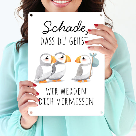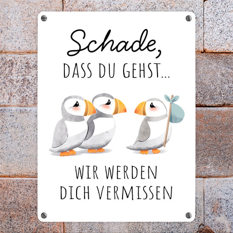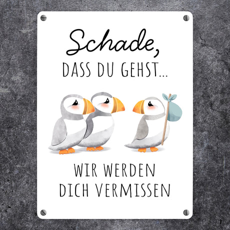 Ab €16,95Grundpreis /Nicht verfügbarAuf LagerSchade, dass du gehst Papageitaucher Metallschild in 15x20 cm Abschied Kollege