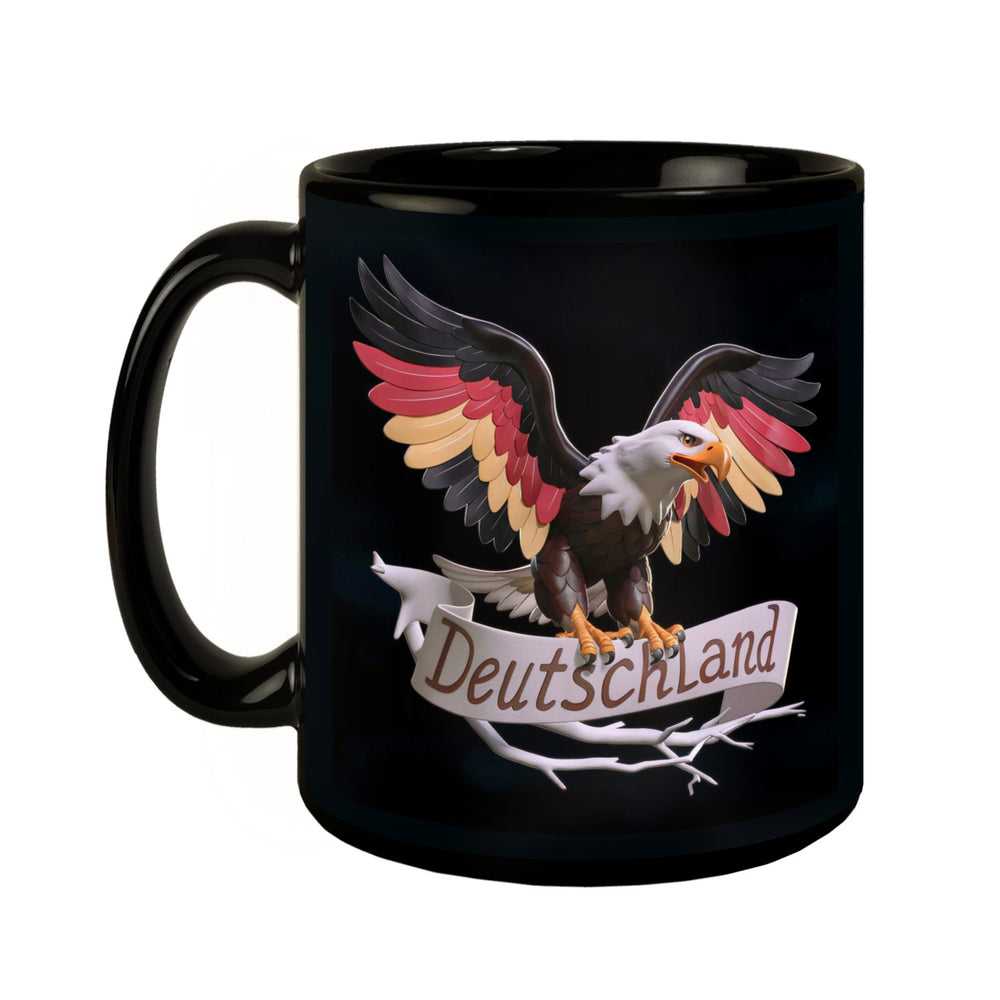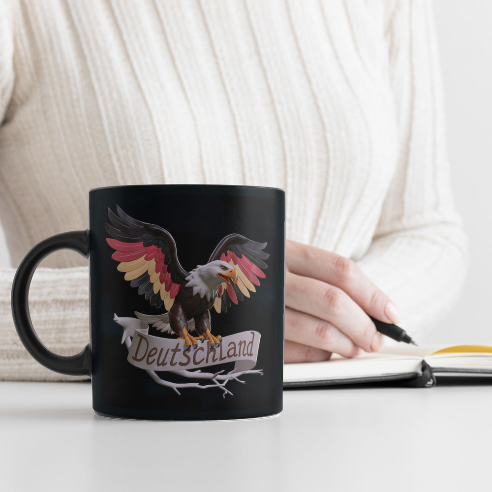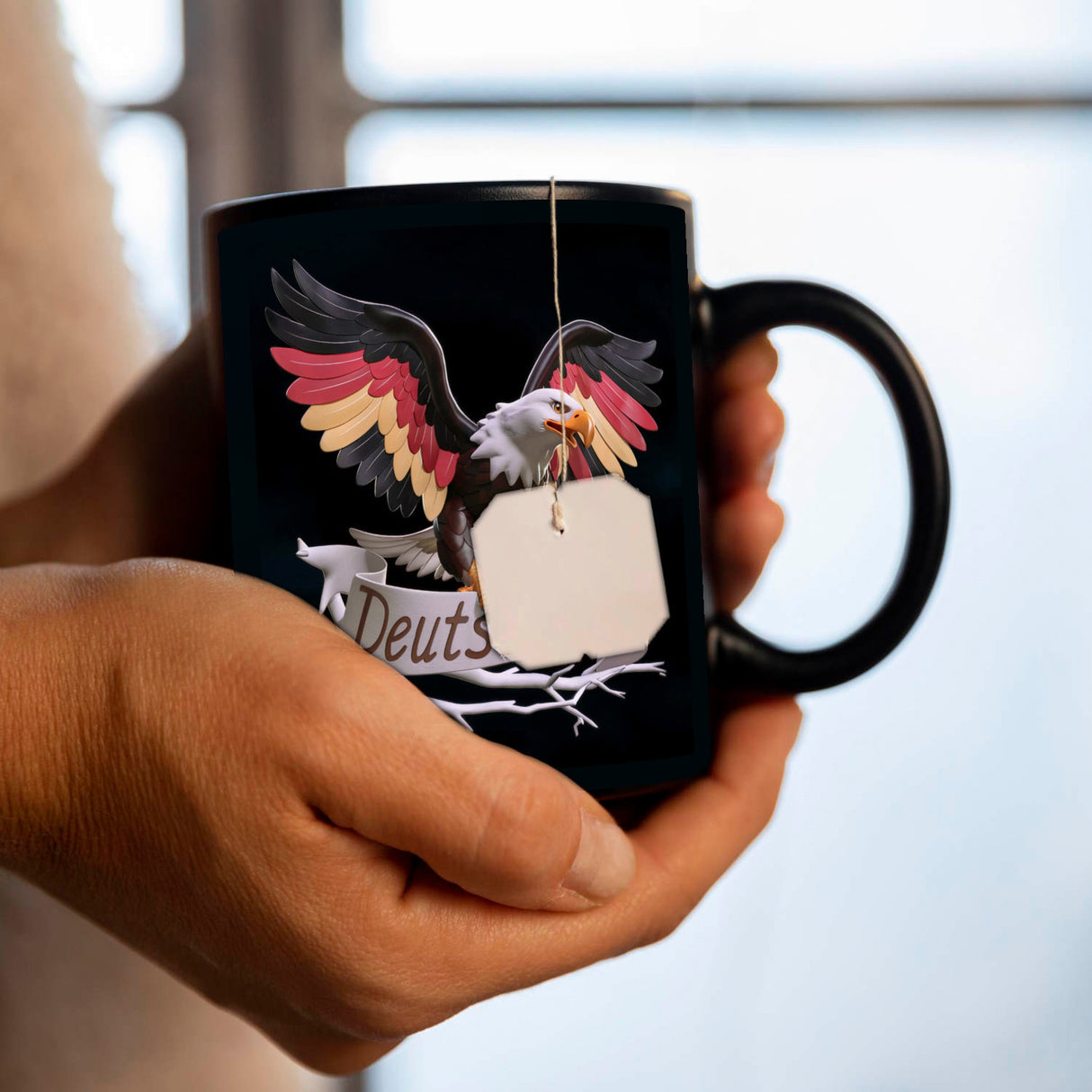 - Stell dir vor, du startest den Tag mit einer Tasse, die von einem majestätischen Adler und einer stolz flatternden Deutschland-Flagge geziert wird. Ja, genau! Diese Tasse schreit förmlich "Guten Morgen, Deutschland!"