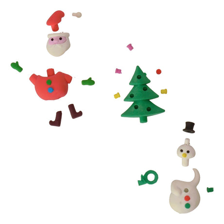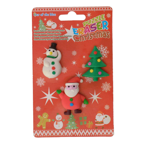 Weihnachtsfiguren Radiergummis mit mehreren Puzzleteilen im 3er Set
