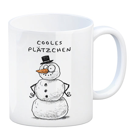 Schneemann mit Hut Kaffeebecher mit Spruch Cooles Plätzchen