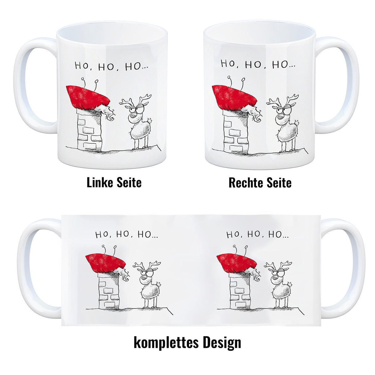 Weihnachtsmann und Elf Kaffeebecher mit Spruch OH OH OH