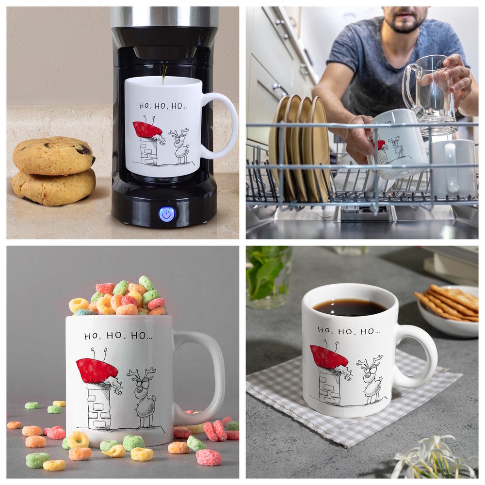 - Der Kaffeebecher ist ein wahrer Hingucker mit seinem lustigen Weihnachtsmann, der in verschiedenen Situationen seinen Job nicht ganz meistert. Zusätzlich tummeln sich ein Schneemann, ein Wichtel und ein Rentier auf manchen Tassen. Mit einem Fassungsvermögen von ca. 300ml ist der Becher ideal für Kaffee, Tee oder heiße Schokolade. Perfekt für die kalte Jahreszeit!