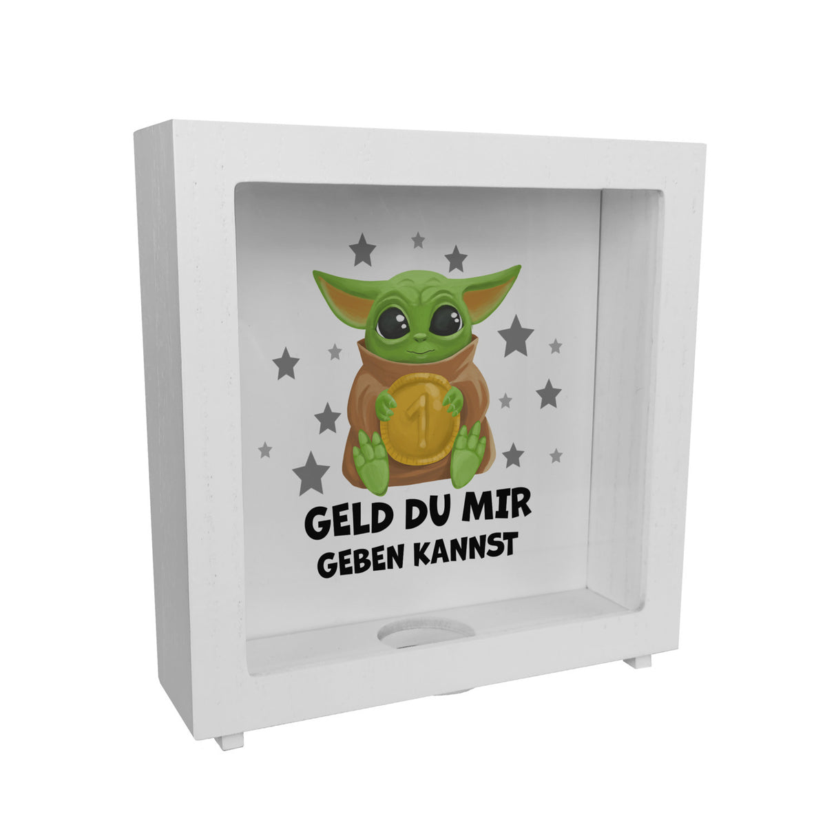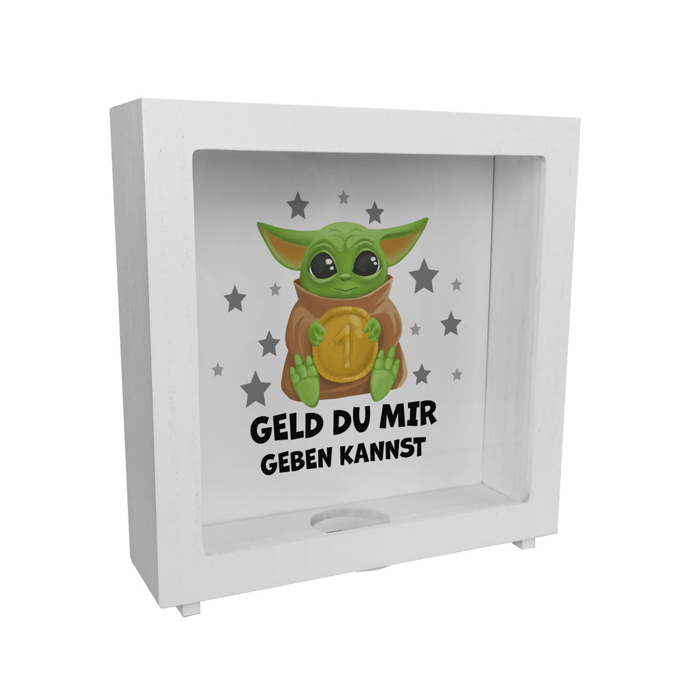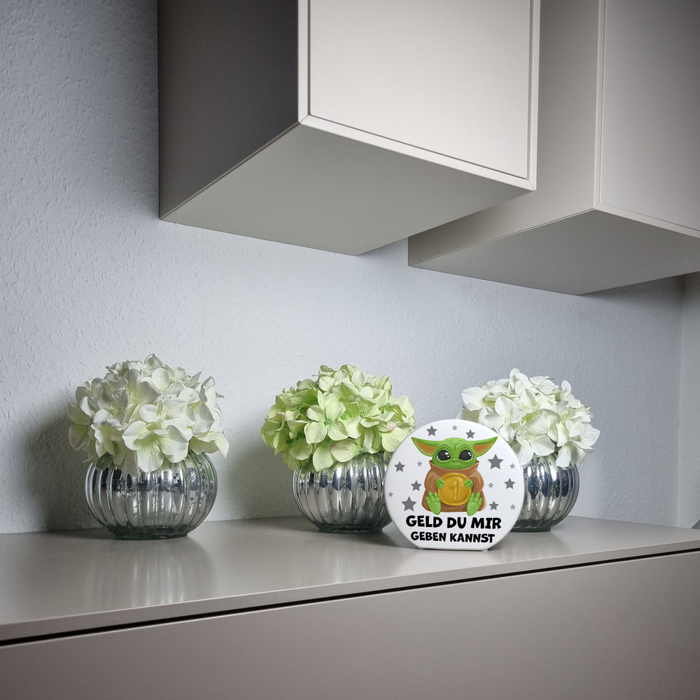 • 1x Baby-Alien Spardose mit Spruch Geld du mir geben kannst in der gewählten Ausführung