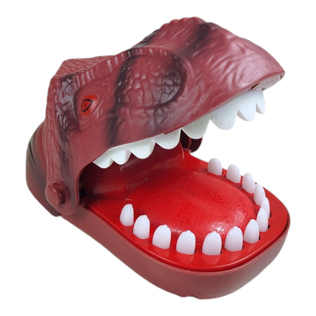 - Das Spielzeug besteht aus einem Kunststoff-Dino-Kopf, der den kultigen T-Rex darstellt. Zähne drücken, Spannung steigt – welcher Zahn löst den Schnapp-Mechanismus aus? Einfach und garantiert spaßig! Ideal für kleine und mutige Dino-Fans.