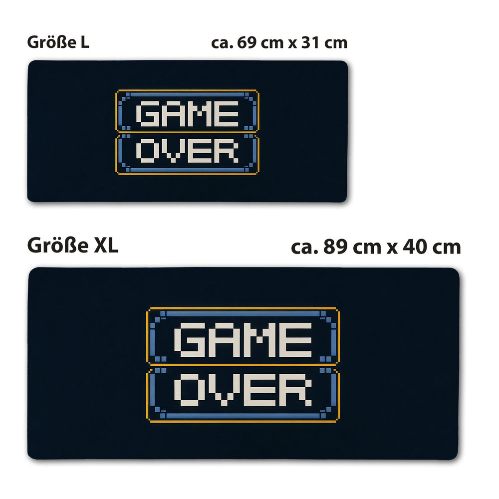 - 1x Game Over Schreibtischunterlage 69x31cm XXL Mauspad in der gewählten Größe