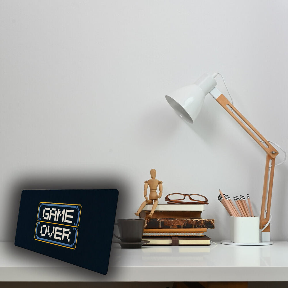 - Ah, der Klassiker: Game Over! Aber keine Sorge, bei dieser Schreibtischunterlage bedeutet das nicht das Ende, sondern den Anfang eines coolen Arbeitsbereichs. Die Pixel-Art-Illustration eines Game-Over-Bildschirms versetzt Sie in die Zeit, als 8-Bit-Kunst der letzte Schrei war und Ihre Highscores das Wichtigste im Leben!