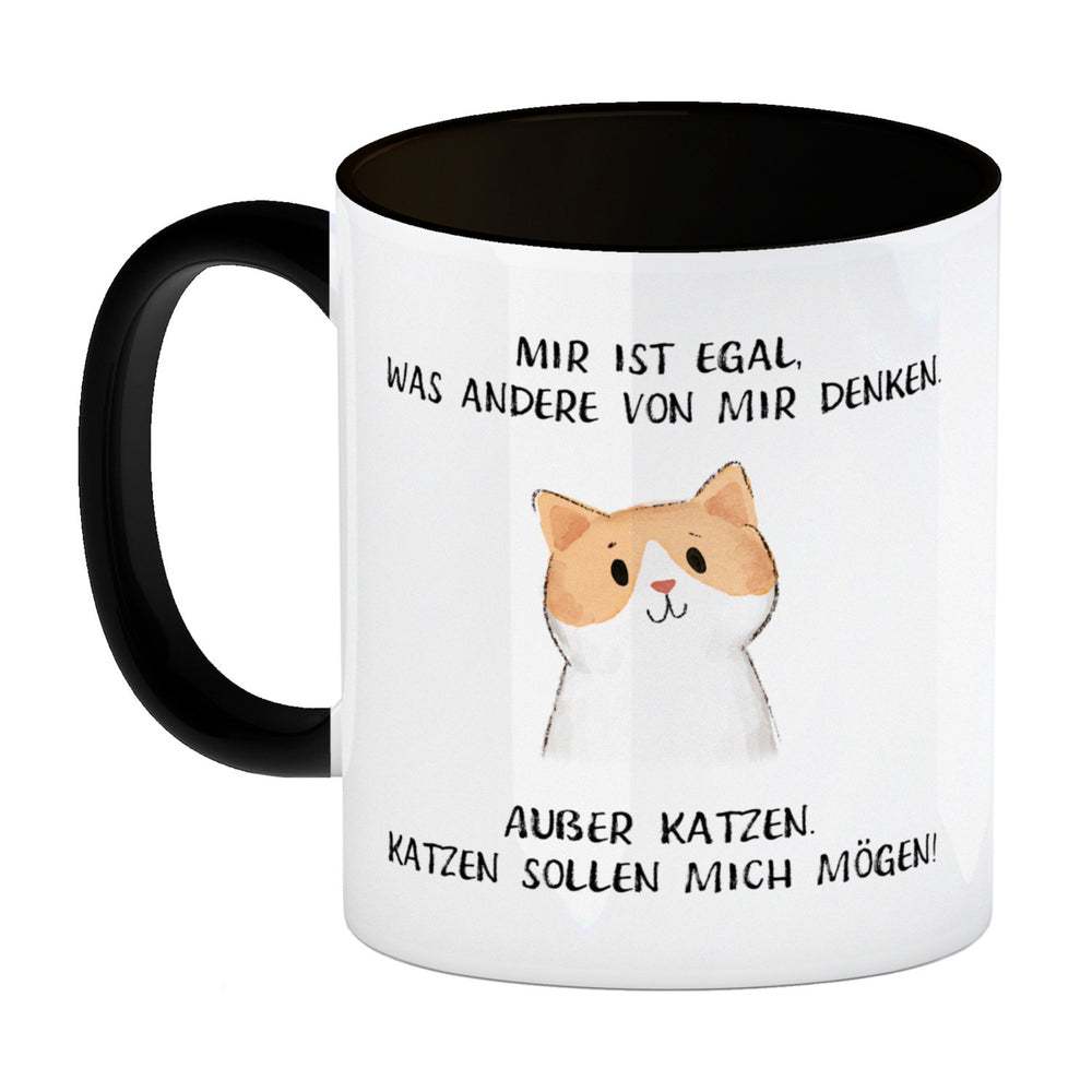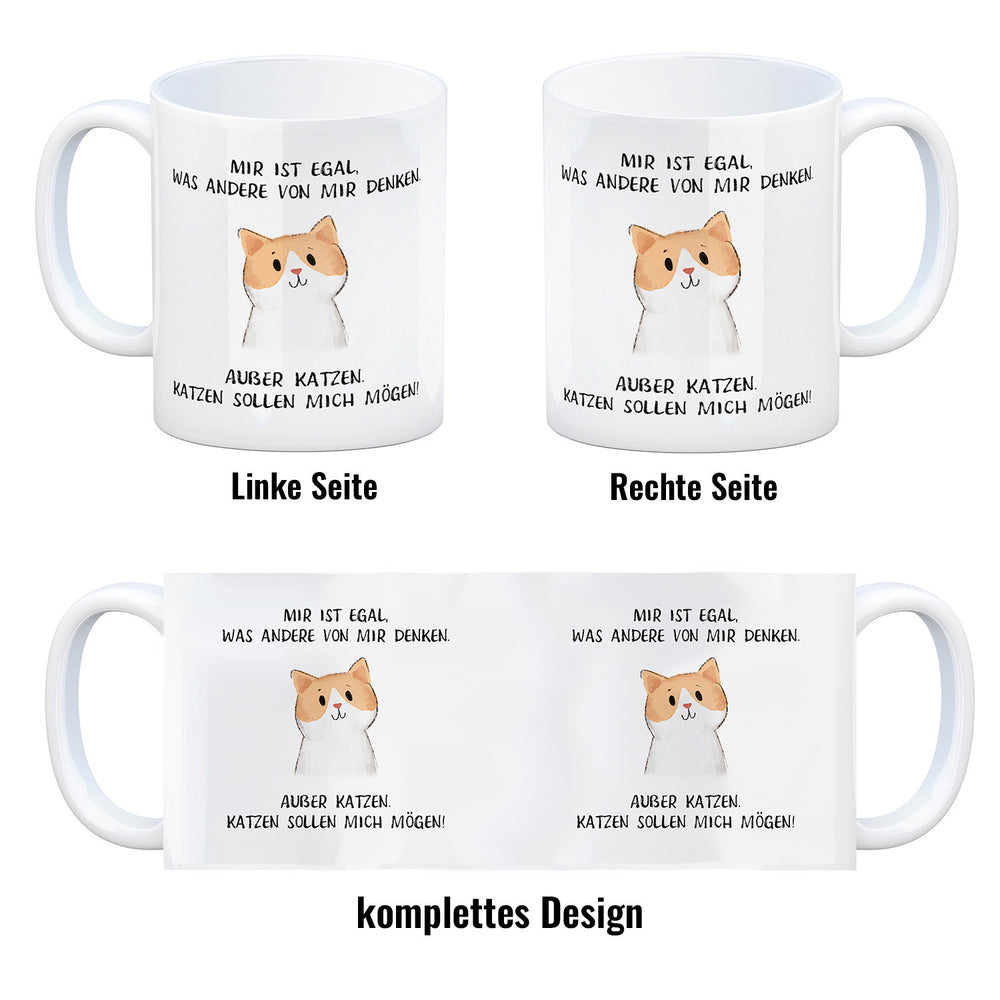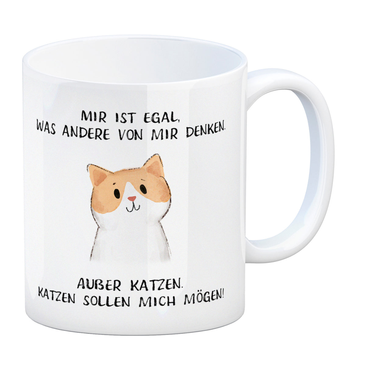 - 1x Ist mir egal was Andere denken Kaffeebecher mit Spruch Außer Katzen in der gewählten Ausführung