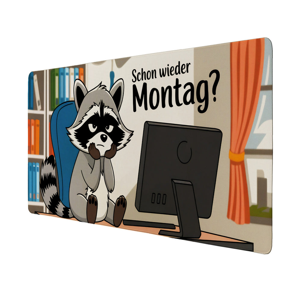 Waschbär am Schreibtisch - Schon wieder Montag Schreibtischunterlage 69x31cm XXL Mauspad