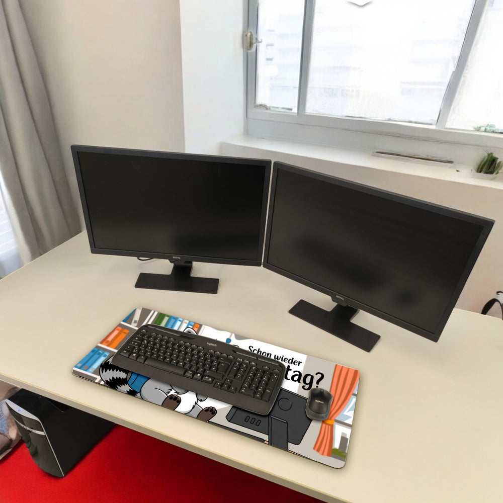 - 1x Waschbär am Schreibtisch - Schon wieder Montag Schreibtischunterlage 69x31cm XXL Mauspad in der gewählten Größe