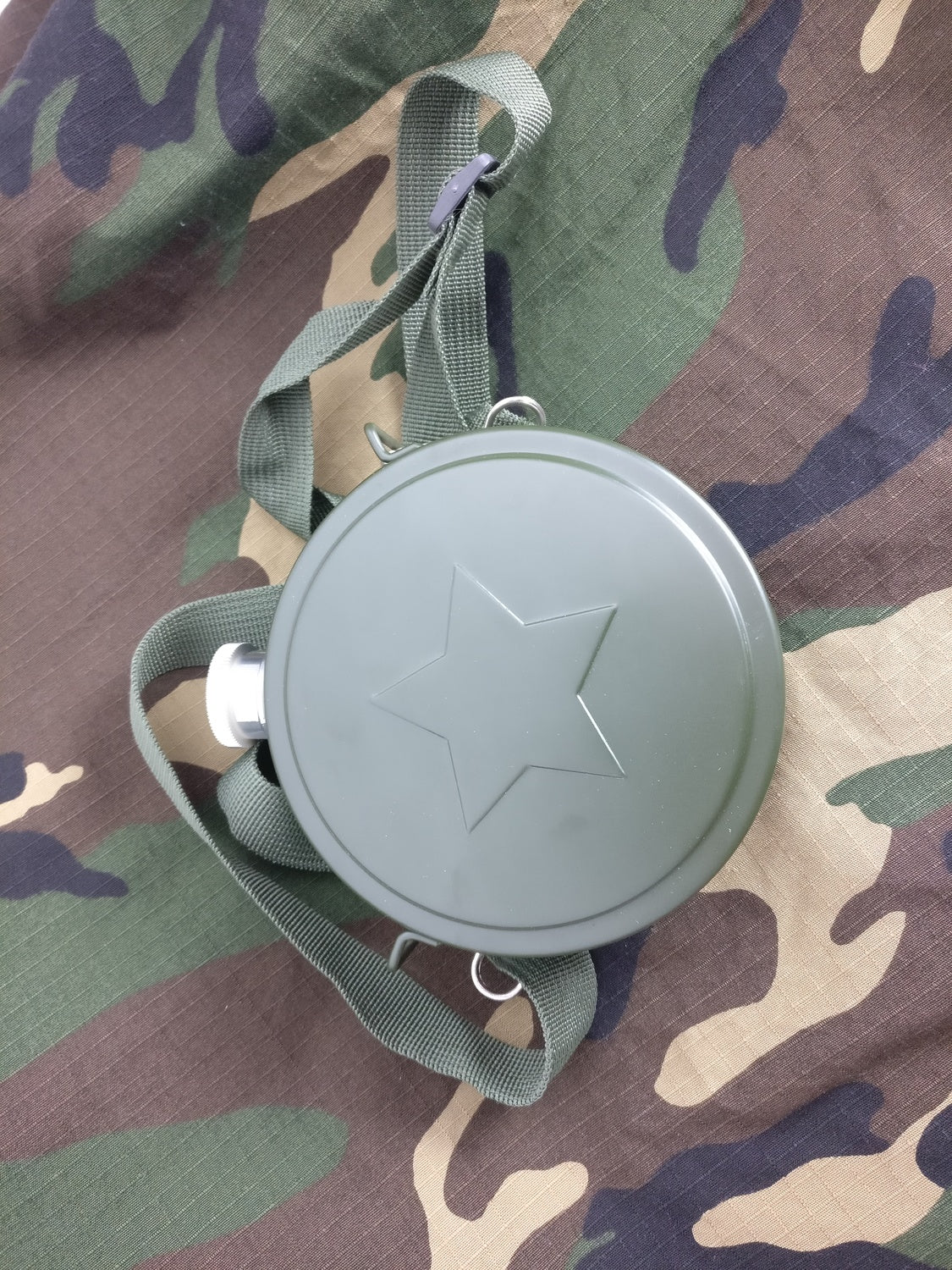 Feldflasche Flachmann mit Schulterriemen ist auf Lager und wird versandt, sobald es wieder verfügbar ist