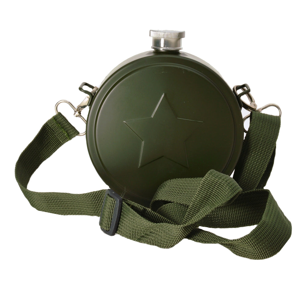 - Lieferumfang: 1x Feldflasche Flachmann bestehend aus 1x Flachmann und 1x Tragegurt.
