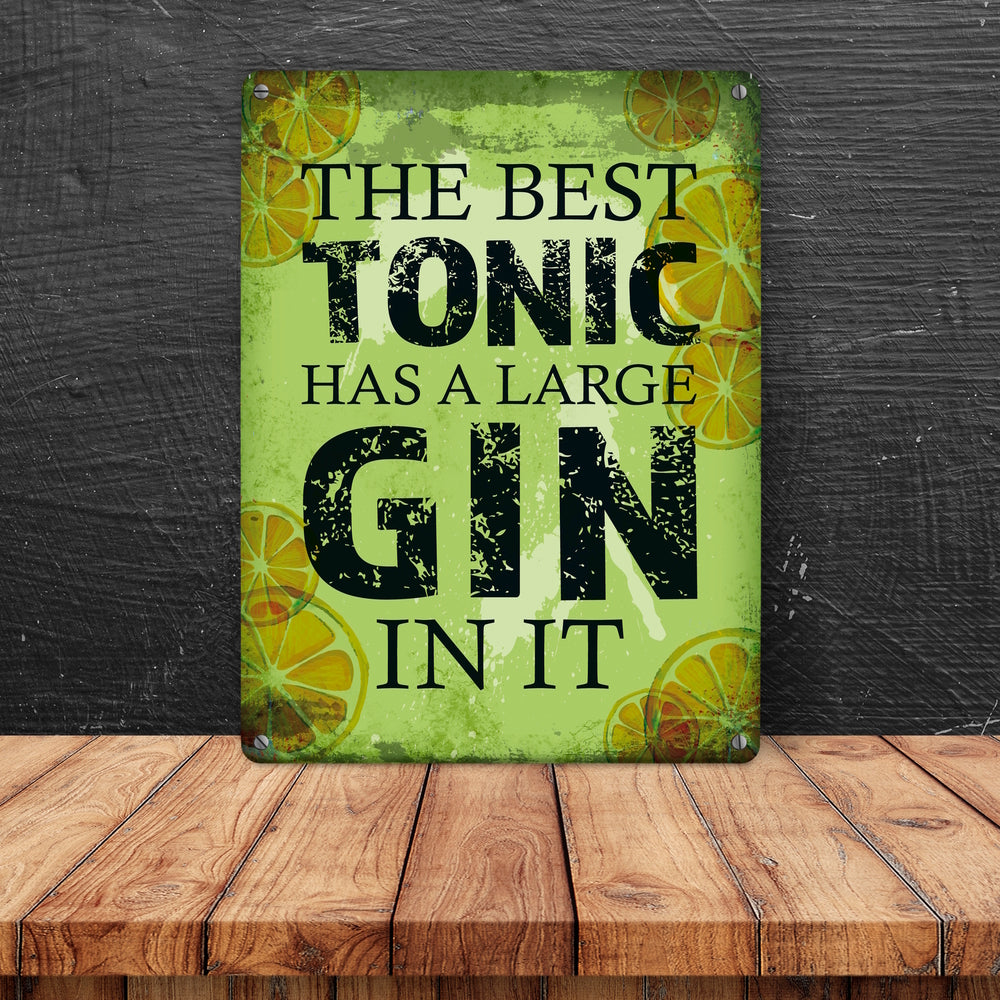 • 1x Metallschild mit Gin Tonic Motiv und Spruch: Best Tonic has Gin in it in der gewählten Größe