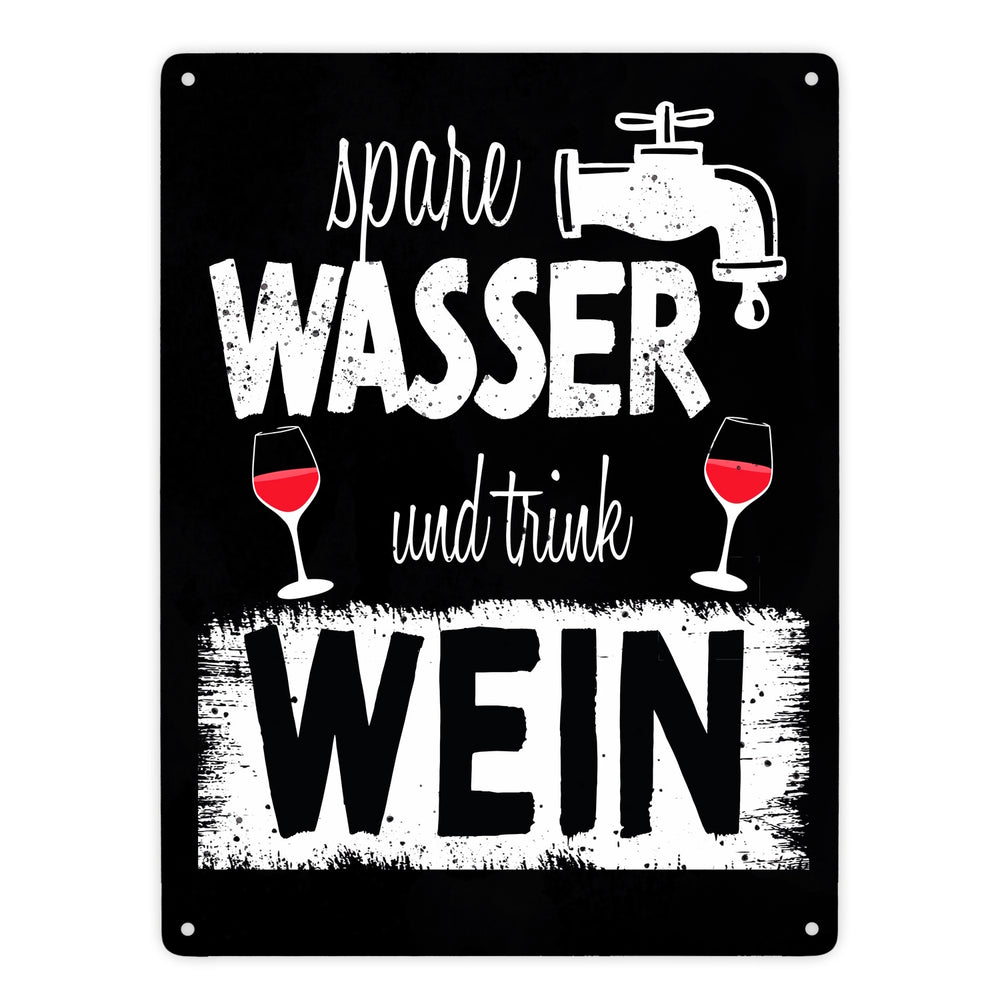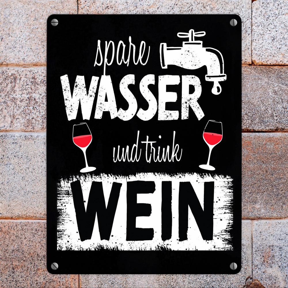 • 1x Spare Wasser und trink Wein Metallschild in der gewählten Größe