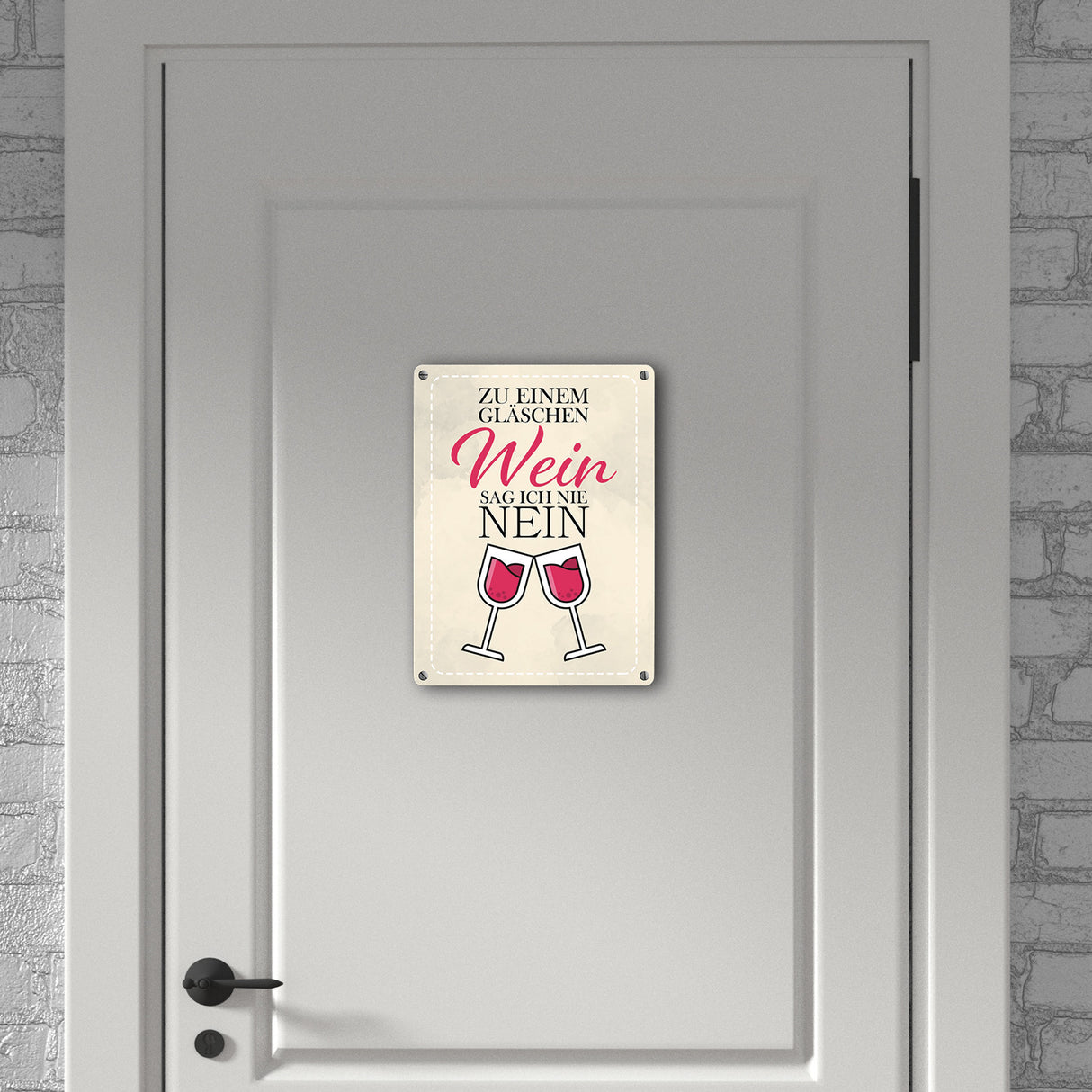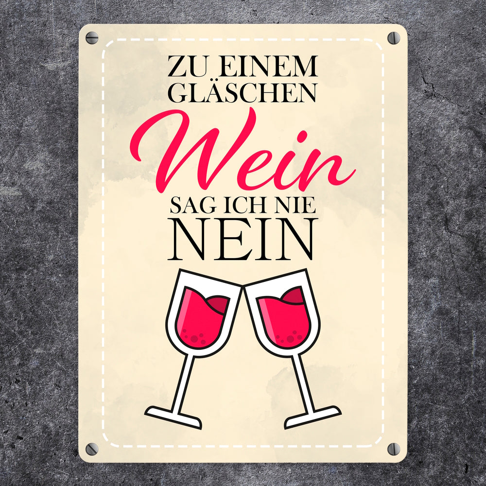 - 1x Zu einem Gläschen Wein sag ich nie nein - Metallschild mit stilvollen Weingläsern in der gewählten Größe
