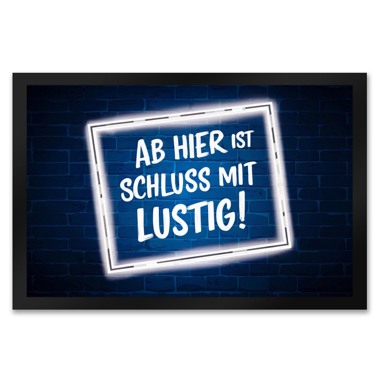 • Hol dir die "Fußmatte - Ab hier Schluss mit Lustig!" und lass jeden Besucher wissen: Jetzt wird's ernst! Mit ihrem leuchtend blauen Hintergrund und dem weißen Rand ist sie ein echter Hingucker.