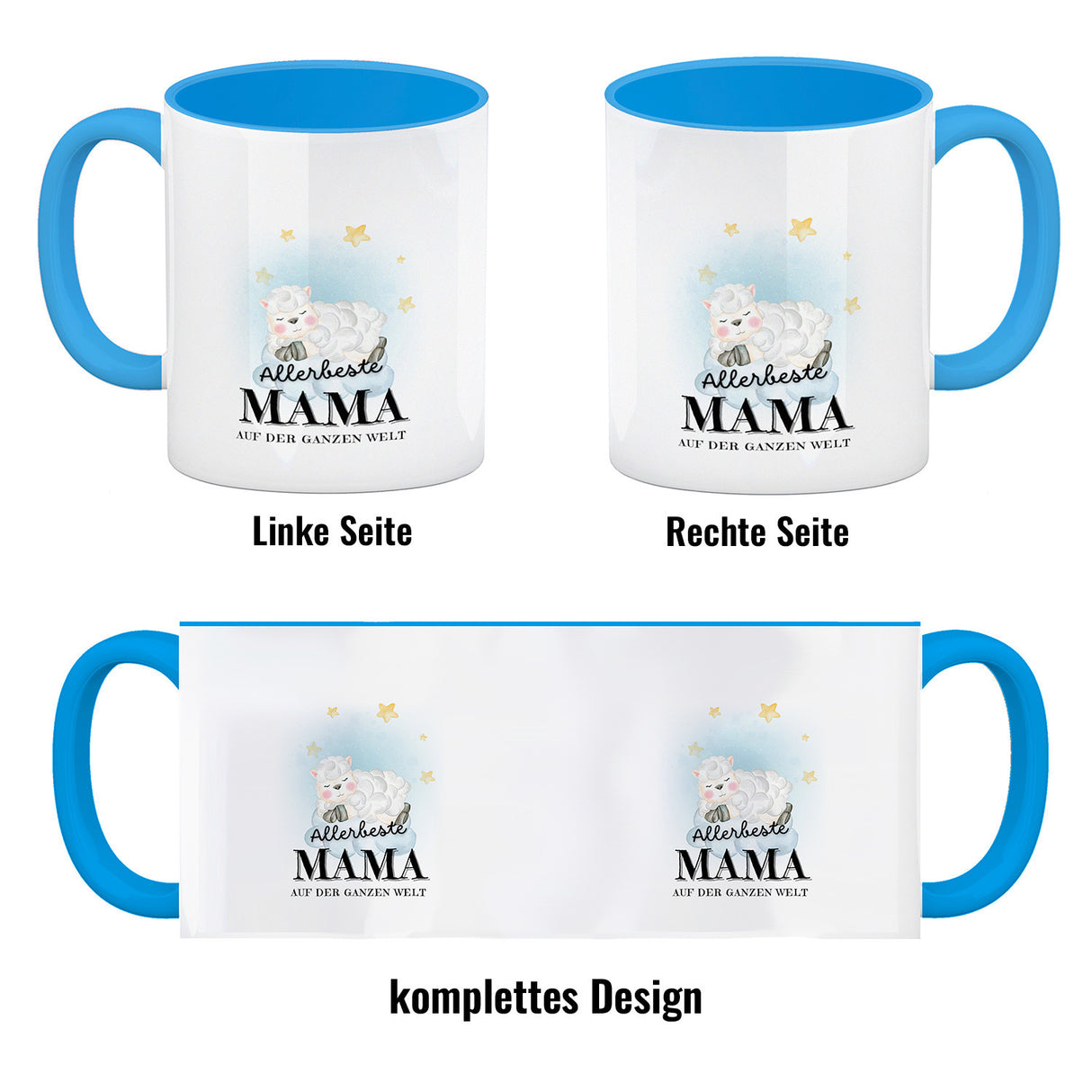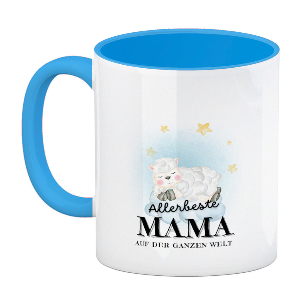 - 1x Allerbeste Mama der Welt Kaffeebecher mit Lamm in der gewählten Ausführung