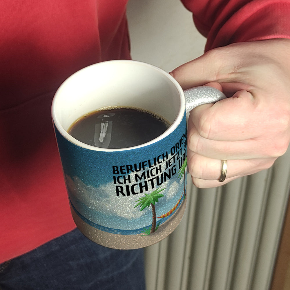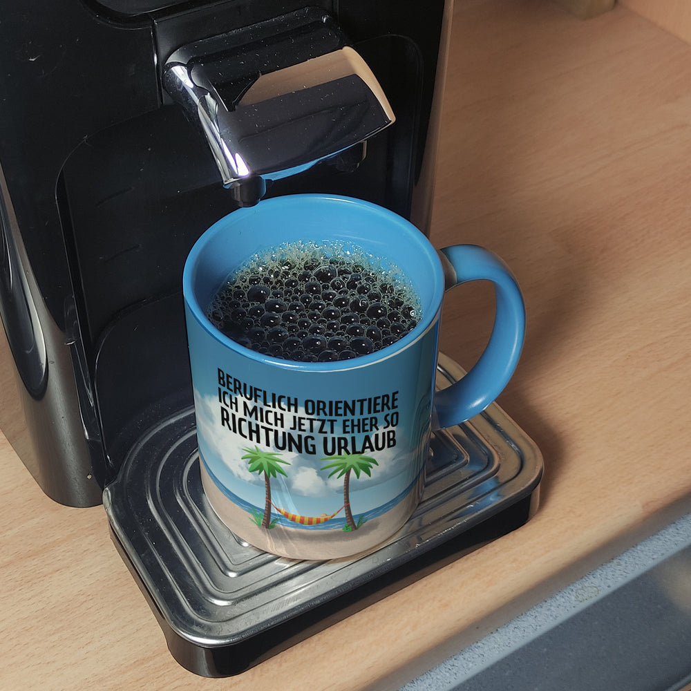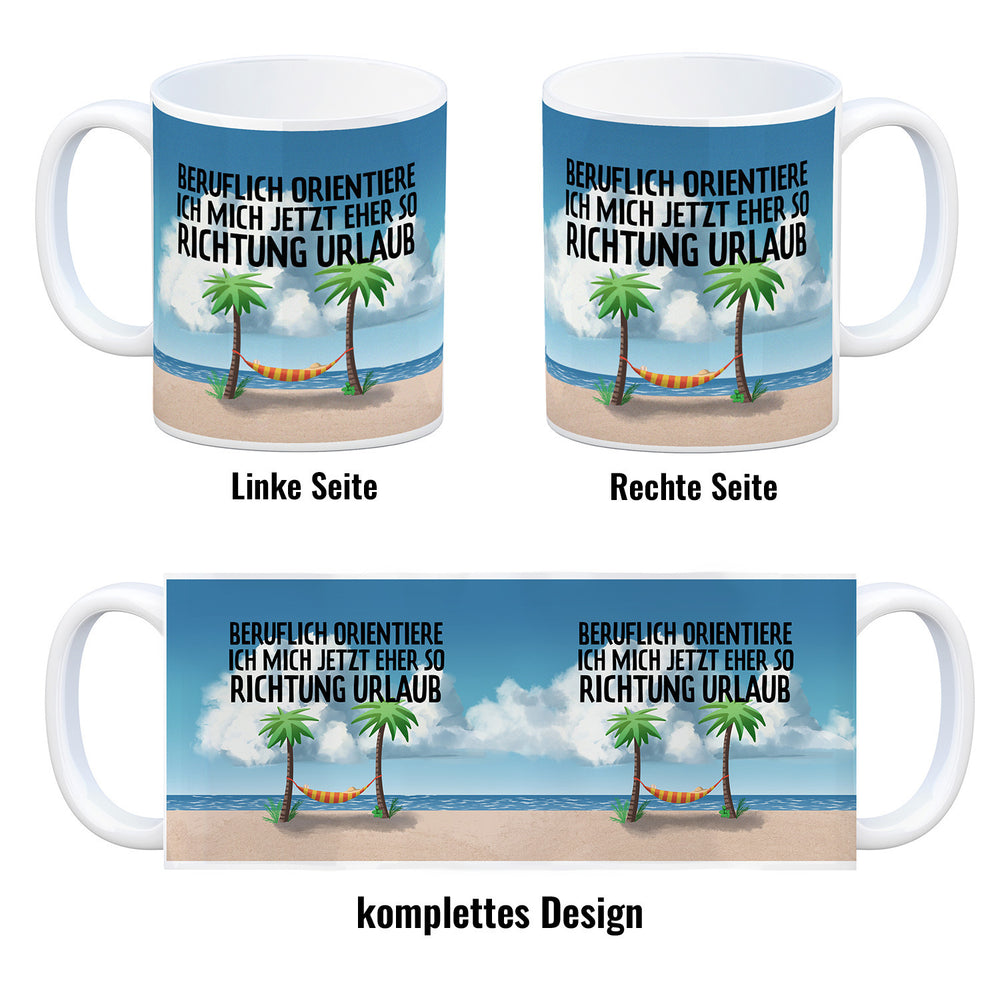 Beruflich orientiere ich mich jetzt eher so Richtung Urlaub Kaffeebecher