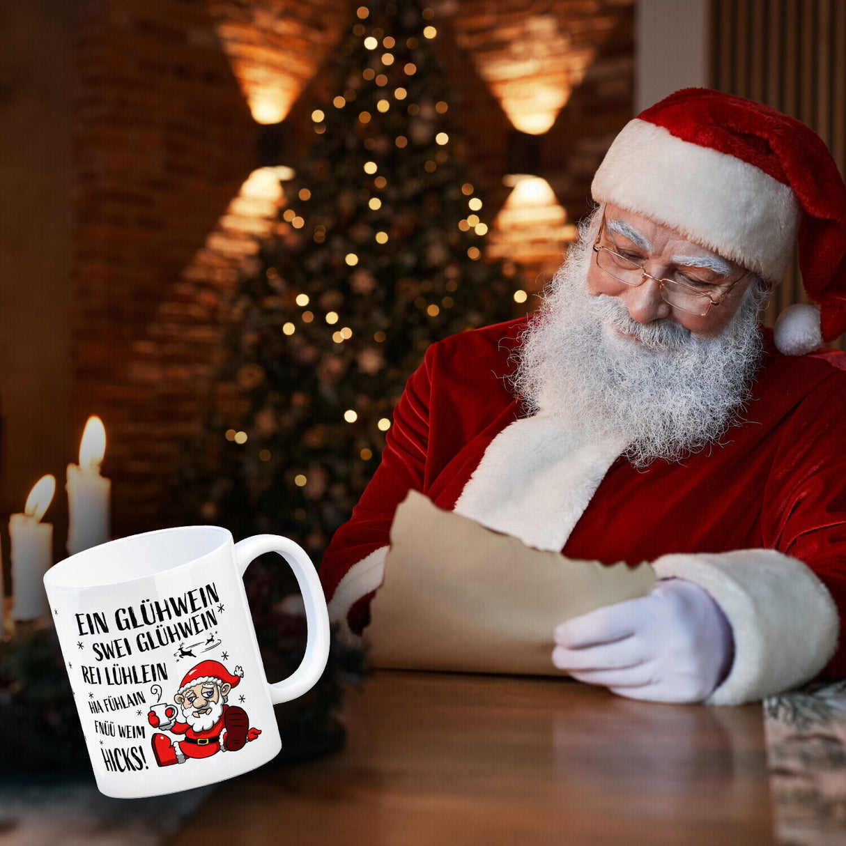 - 1x Betrunkener Weihnachtsmann Glühweintasse im Comicstil in der gewählten Ausführung