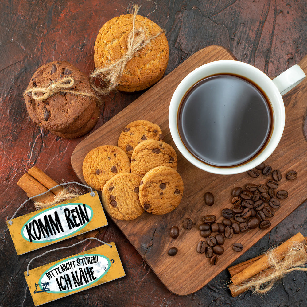 Gönnen Sie sich das schicke und praktische Bitte nicht stören - ich nähe Wendeschild mit Kordel . Das Wendeschild ist perfekt geeignet, um Ihre Gäste immer wieder aufs Neue auf Ihr Hobby hinzuweisen. Auf der Vorderseite steht Bitte nicht stören - ich nähe , auf der Rückseite Komm rein . Eine Kordel zur Befestigung ist ebenfalls im Lieferumfang enthalten. Mit dem schicken Design macht Nähen noch mehr Spaß und Sie können sich ungestört Ihrem Hobby widmen. Holen Sie sich jetzt das Bitte nicht stören - ich nähe Wendeschild mit Kordel und machen Sie Ihr Nähzimmer noch einladender!