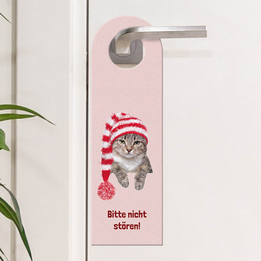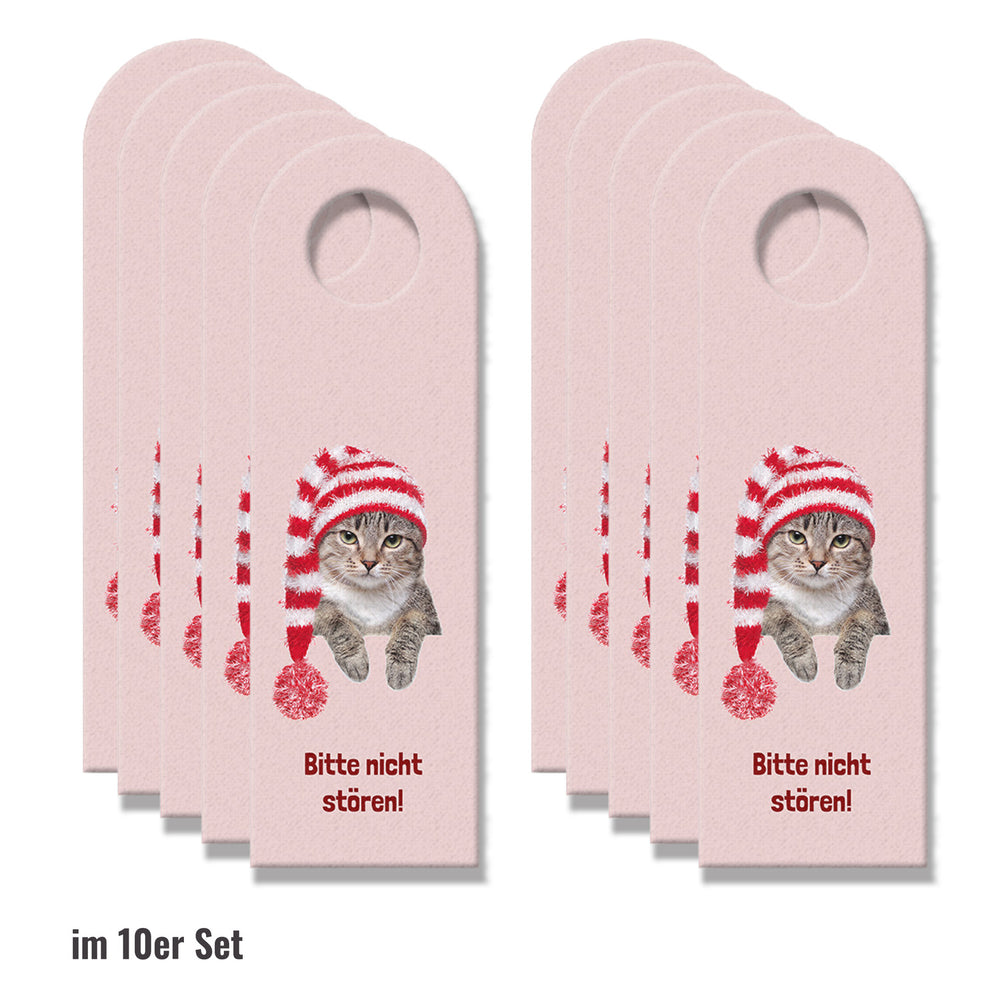 - 1x Bitte nicht stören und Herzlich Willkommen Türhänger mit niedlichem Kätzchen und Bobbelmütze in der gewählten Setgröße