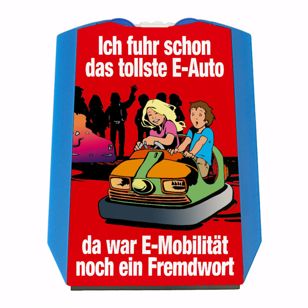 • Lieferumfang: 1x Boxauto als E-Auto Parkscheibe mit Spruch zu E-Mobilität in blau