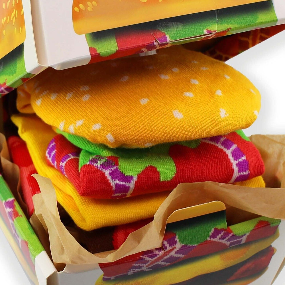 1x Burger Socken Set in Geschenkverpackung bestehend aus 2x Paar Burger Socken.